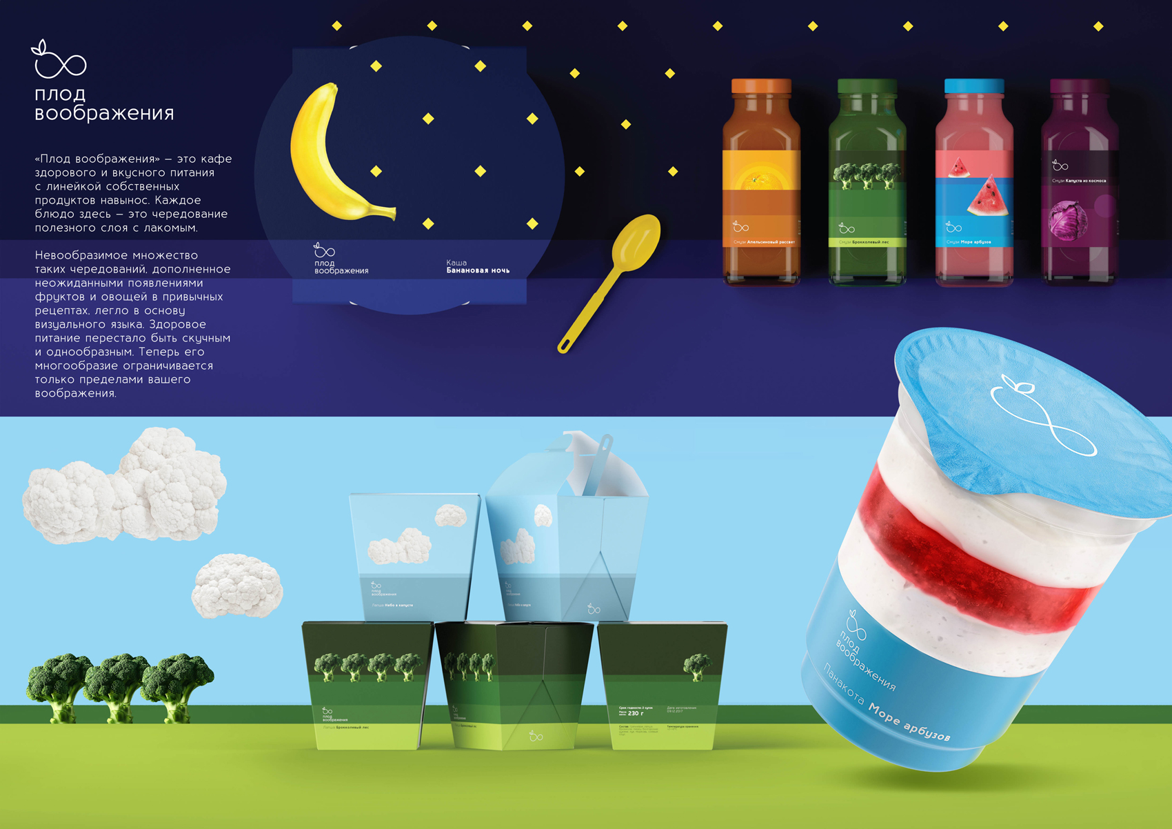 Напомним, в рамках проекта «Плод воображения» агентством СОЛЬ было разработано название, визуальная идентичность и дизайн-концепт упаковки сети здорового и вкусного питания с линейкой собственных продуктов навынос. Каждое блюдо сети — от напитков до завтраков — это чередование полезного слоя с лакомым. Такой формат нацелен на молодую и активную аудиторию, открытую к здоровому образу жизни.
