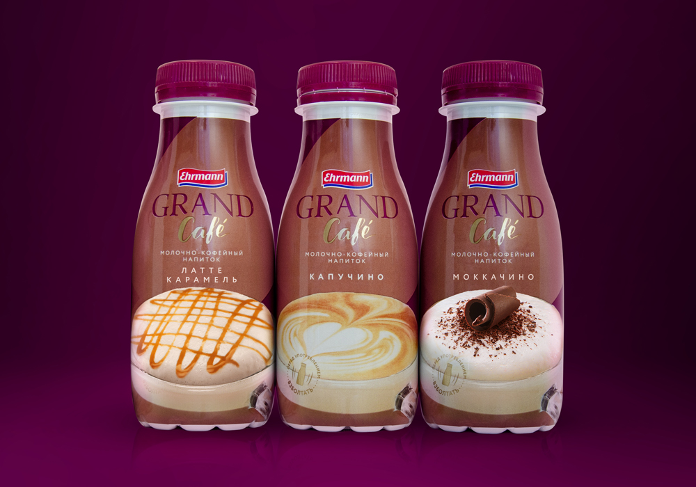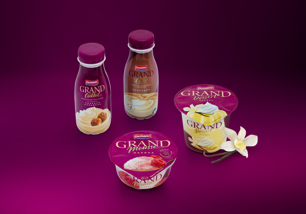 Помимо редизайна линейки, бренд-менеджеры планировали вывести на рынок еще три новых продукта под маркой Grand: мусс, кофейно-молочные напитки и молочные коктейли. После успешного сотрудничества над брендом EPICA, компания Ehrmann обратилась к агентству Getbrand для реализации этого проекта.