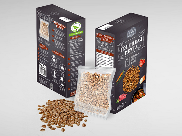 Основой упаковки стала стильная черная матовая коробка с красочными картинками на лицевой стороне. По традиции упаковка содержит всю необходимую информацию о пользе и энергетической ценности крупы, экологичности и отсутствии ГМО. Также для покупателей представлена подробная инструкция приготовления, чтобы блюдо получилось максимально вкусным и полезным.