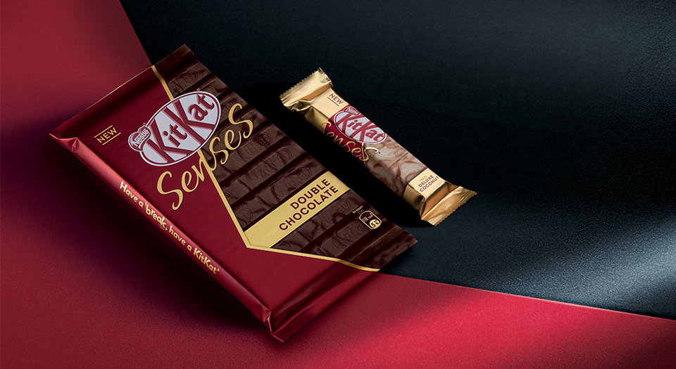 «В процессе разработки дизайна нового KitKat® Senses® перед нами стояла непростая задача: подчеркнуть все достоинства принципиально нового продукта для KitKat®, сохранив основные константы айдентики глобального бренда, — рассказала Евгения Струк, арт-директор агентства. — После выбора основного графического направления мы сосредоточились на деликатном подборе материалов и цветов. Снимки сотен образцов продуктов сменяли друг друга, пока не был найден «тот самый». Поиски красного цвета также вышли за рамки пантонного веера: мы несли в офис все, что могло подойти под определение «подходящего красного». Выбор материала упаковки сыграл важнейшую роль в достижении блестящего, в прямом смысле, результата: мы добились глубокого красного цвета с благородным блеском, искристого золота и реалистичного снимка продукта».