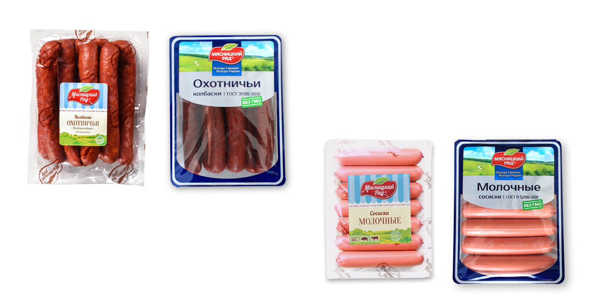 · разработать новую упаковку и этикетку, выгодно выделяющие продукцию «Мясницкого ряда» на полках сетевых магазинов,