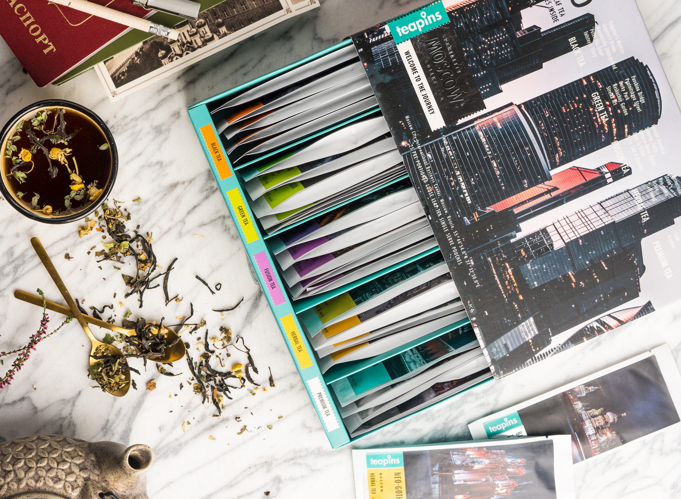 Торговая марка Teapins — это гео-тэги(пины) по чайным местам мира. Основной элемент, связывающий разные линейки бренда Teapins — это «билет». Билет в путешествие по уголкам мира, связанным с чаем. В линейке Farmers покупатели путешествуют по чайным фермам разных стран, а в линейке Traveler — путешествуют по местам, где сильны чайные традиции, по странам и городам, любящим чай. Как приятно привезти из путешествия чай с воспоминаниями о путешествии: можно заваривать чай, рассматривать фото мест где побывал и делиться рассказами с друзьями и близкими.