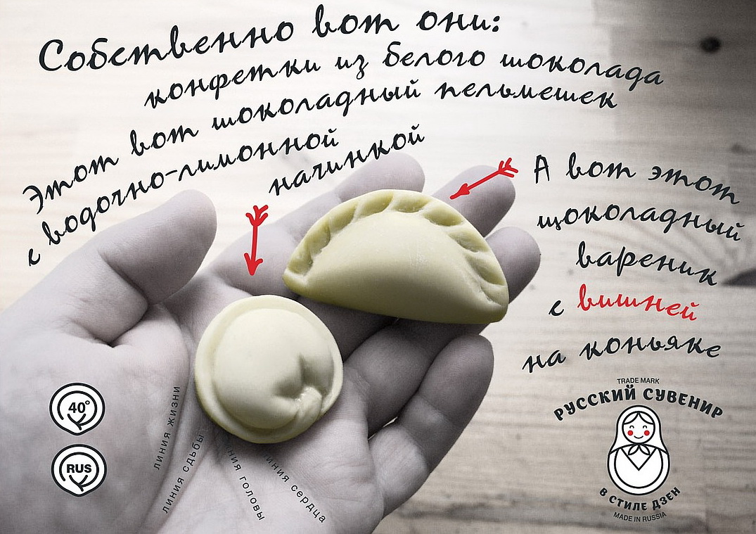 Так рекламный дизайнер, знающий толк в красивых идеях, придумал новый русский сувенир. Он уверен, что его творение встанет в один ряд с матрешкой и шапкой-ушанкой. А то! Владислав еще не успел запустить производство, а за его пельменями уже выстроилась очередь.