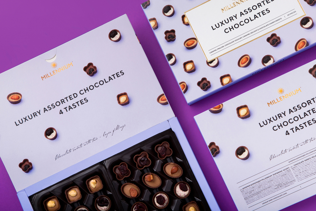 Продукция фабрики Millennium появилась на рынке шоколада в 1999 году. Бренд продолжает развиваться и сегодня в первую очередь говорит о европейском стиле жизни, успешности и гедонизме. Эта тема должна быть отражена и в дизайне упаковки: обновленному продукту нужно соответствовать современным вкусам целевой аудитории, в том числе и визуально.