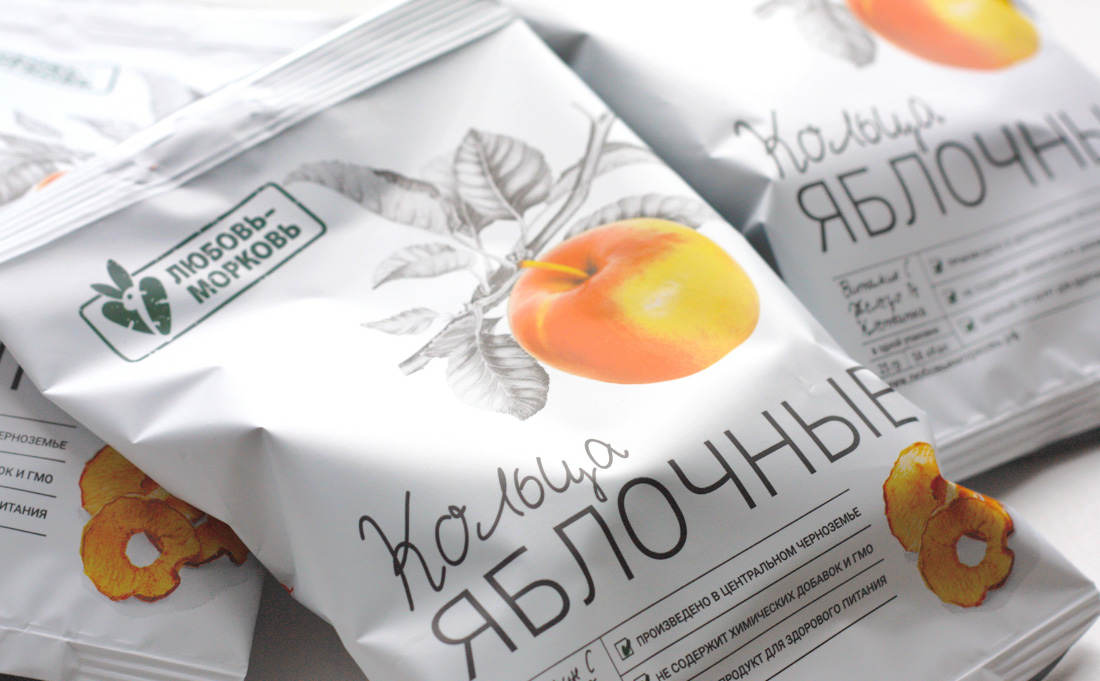 Заказчик высказал пожелание, чтобы название было русскоязычным и легко запоминающимся. Поэтому VarioBrands предложили игривое название «Любовь-Морковь», которое хорошо передает настроение продукта для небольшого перекуса.