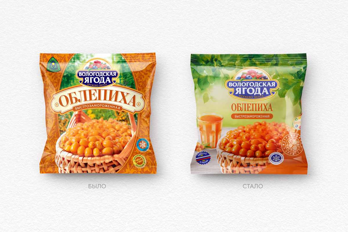 «Вологодская ягода. Кружево вкуса» — торговая марка, сохраняющая верность своим традициям производства и лояльность целевой аудитории. Однако дизайн линейки замороженных продуктов морально устарел и выглядел набором цветовых пятен, а его восприятие на полке — выкладка за стеклом холодильника — усугубляло ситуацию.
