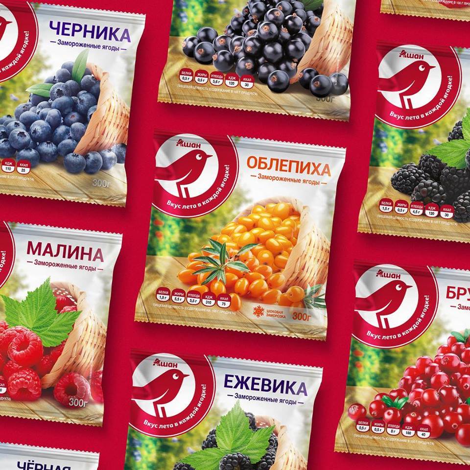 Перед BROTHERS была поставлена задача разработки концепций упаковки собственных марок для различных продуктовых категорий. В центре новой дизайн-концепции фирменная птичка из логотипа «Ашан» — элемент бренда, доверие к которому сеть завоевывала долгие годы по всему миру.