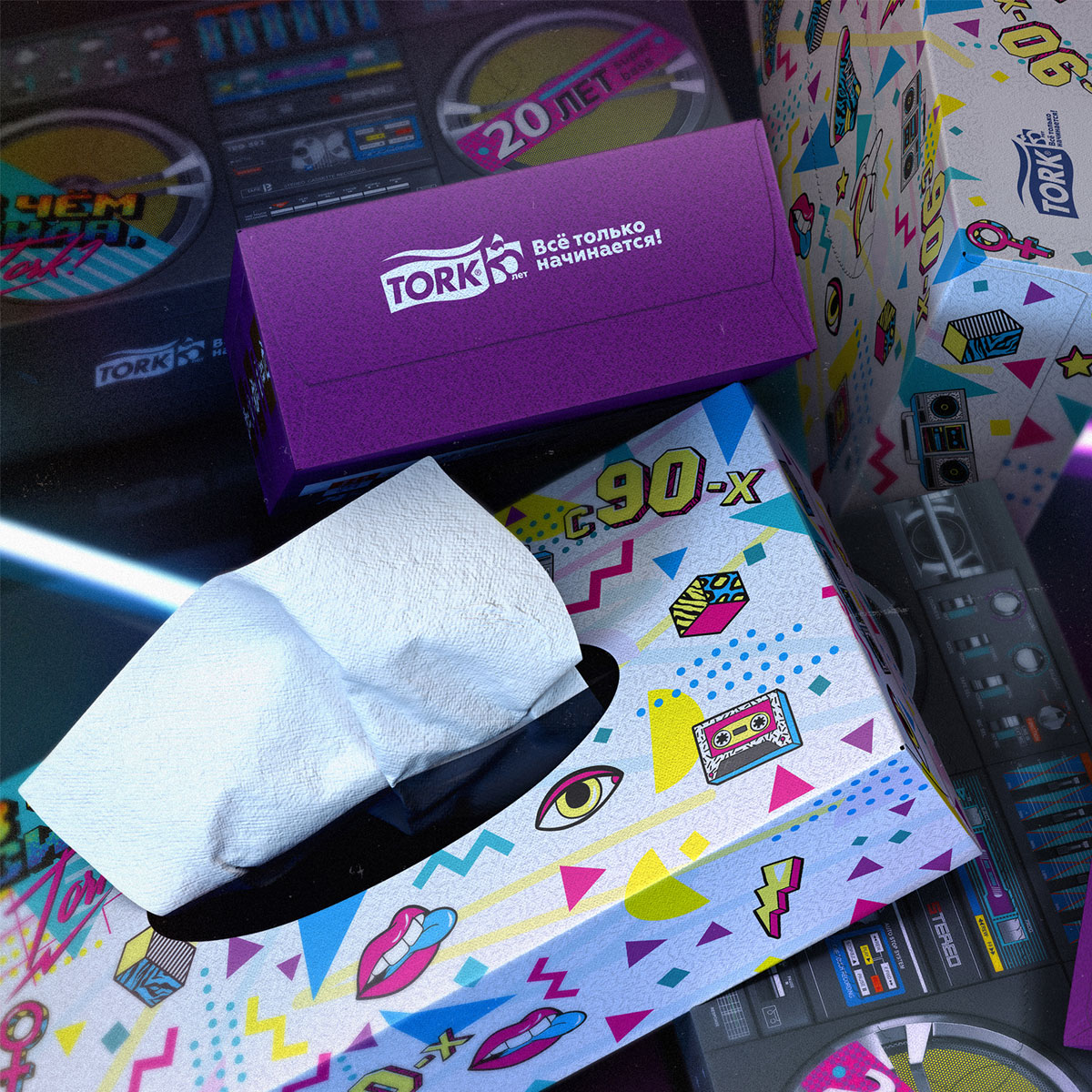 Бренд Tork пришел на российский рынок в 90-е, когда ощущение того, что «все впереди» было у всей страны. Для этой эпохи была характерна определенная визуальная стилистика — кричащая, дерзкая, эклектичная.