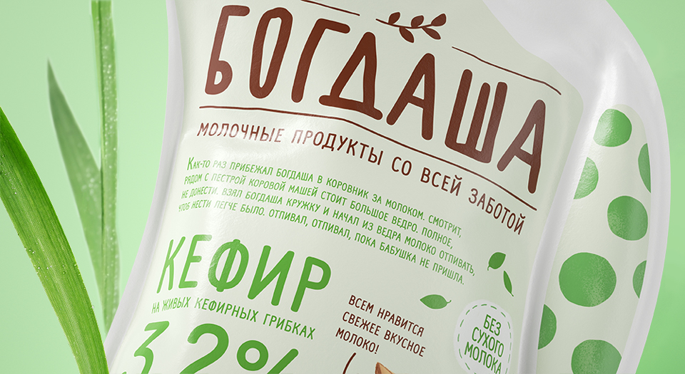 Мы сохранили название бренда, но несколько переосмыслили его в процессе работы: всем показалось очень симпатичной идея, что поскольку Богдан — очень популярное сейчас детское имя, то и Богдаша вполне может быть обычным современным ребенком, приехавшим в деревню на летние каникулы. Разработанная дизайн-концепция рассказывает потребителю о деревенском лете — глазами наслаждающегося солнцем и теплом мальчика.