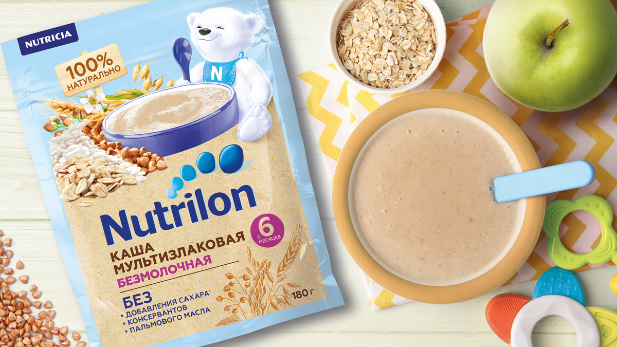 В развитие линейки продуктов Nutrilon компания NUTRICIA начала выпускать безмолочные каши. Каши — продукт для первого прикорма, поэтому при разработке дизайна важно было избежать сложностей идентификации каш и смесей. Необходимо было также добавить эмоциональности и вкуса в строгий медицинский образ Nutrilon.