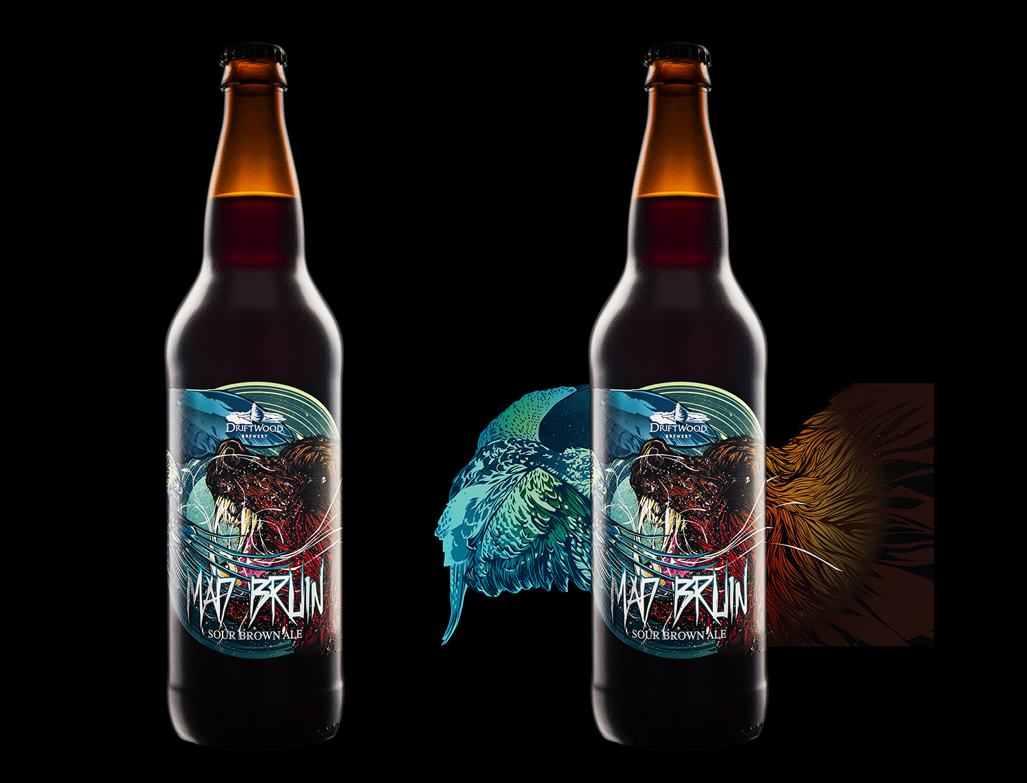 Пиво стало очередным продуктом в серии Bird of Prey. На этикетке в конфликт вступают птица и медведь. Медведь, выходящий из спячки, олицетворяет длинный сон сорта пива Oud Bruin, который наконец-то закончился. Поскольку сорт Oud Bruin является классикой, отличающейся от других сортов Driftwood, пиво Mad Bruin должно было выделиться, но при этом вписаться в серию Birds of Prey.