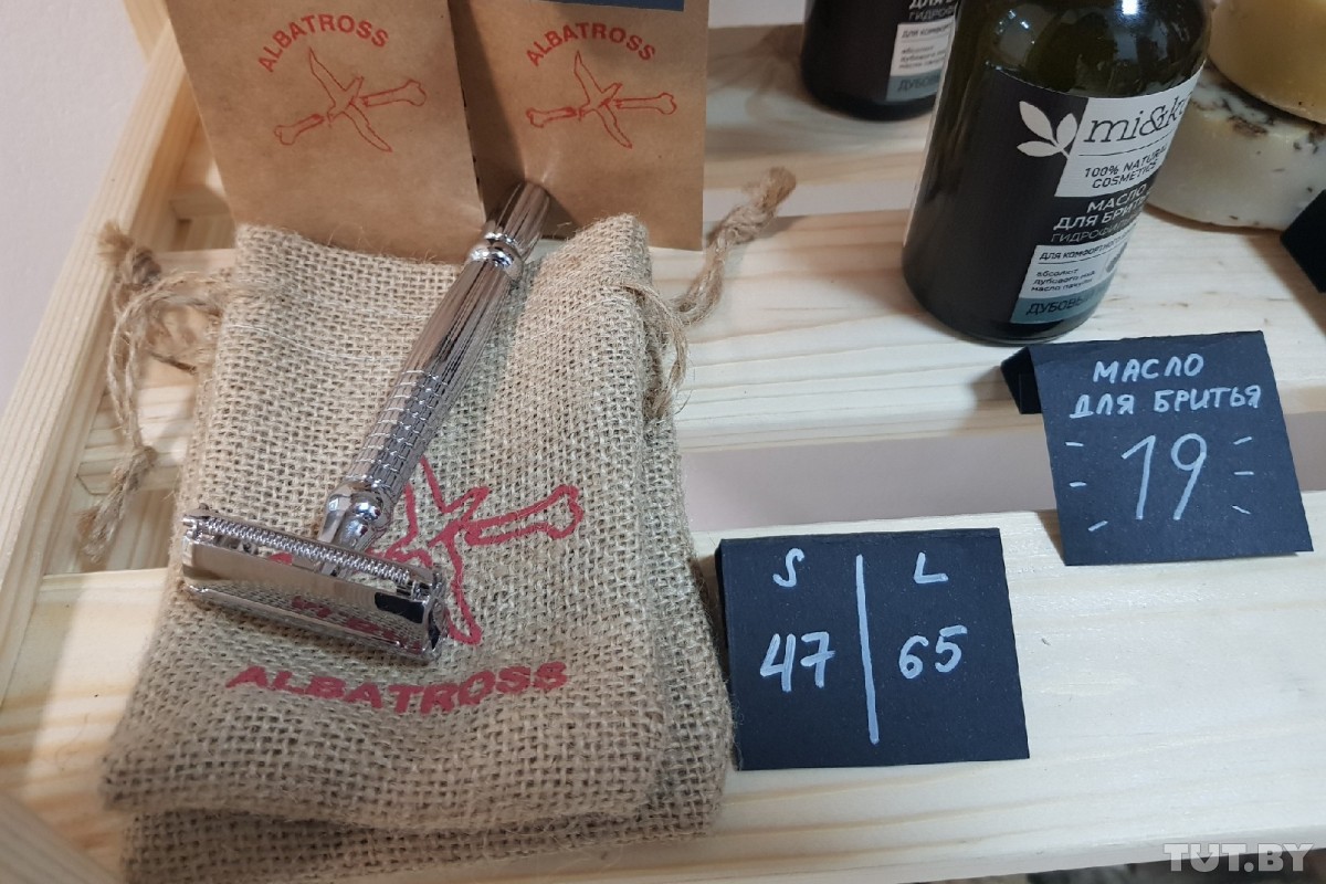 Хозяйственные средства, которые продают в Zerro, не содержат животный жир и синтетические добавки. Также есть в продаже современные металлические станки. Стоят 47 и 65 рублей, плюс — упаковка лезвий за 5 рублей.