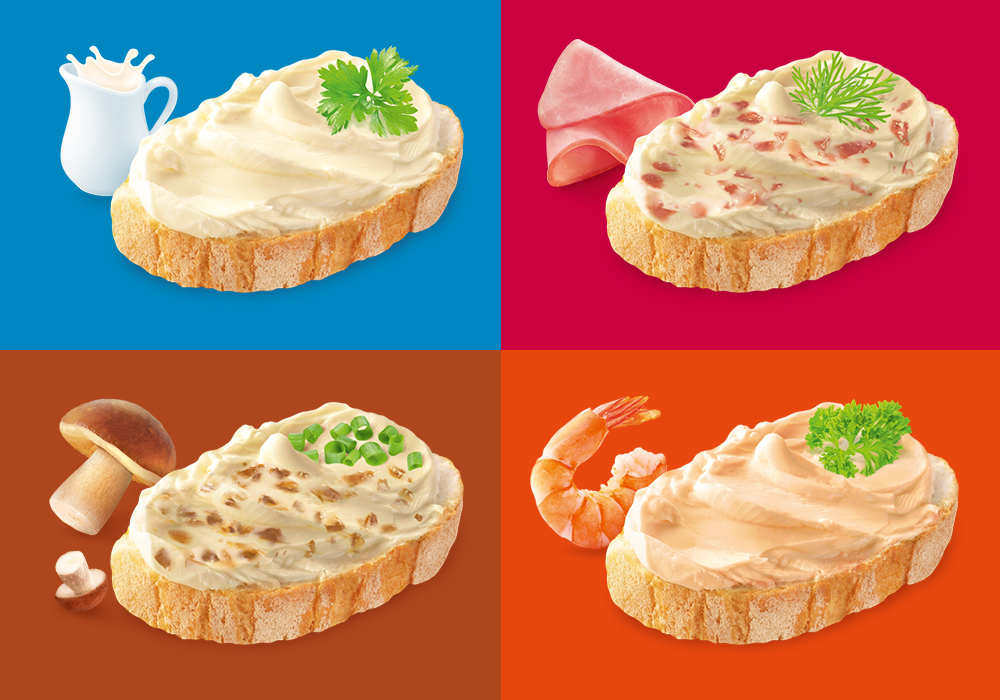 Для усиления ключевого драйвера категории мы ввели впечатляющую фудзону в виде большого аппетитного бутерброда с толстым слоем сливочного сыра сверху. Это помогло не только визуализировать вкус каждого сыра в линейке, но и акцентировать внимание на важных для аудитории бенефитах продукта — аппетитности и сливочности.
