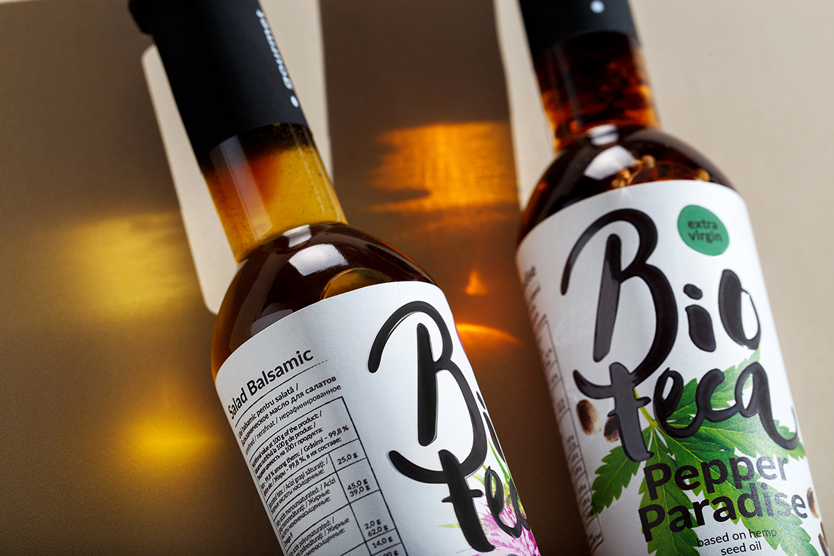 Растительные масла Bioteca от компании Azamet Pro — это уникальный продукт, изготовленный по технологии прямого прессования, с сохранением микроэлементов и витаминов, легко усваиваиваемых организмом. Линейка Classic данной ТМ была успешно выведена на рынок Молдовы, и клиент запланировал поставку продукции на экспорт. Для этого требовалось осовременить дизайн этикетки, разработав чистый визуальный образ продукта. Актуальное решение следовало адаптировать для новой линейки Gourmet от Bioteca — авторской коллекции миксов.