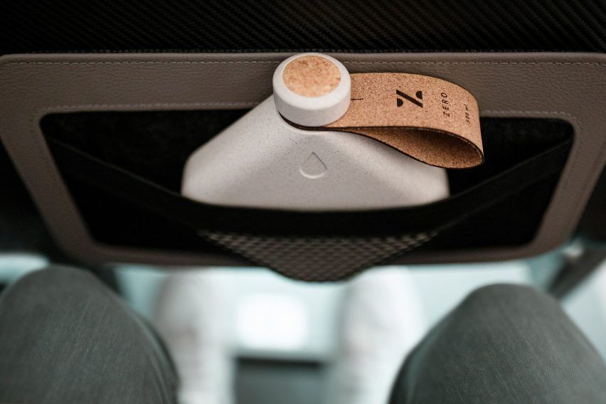 Дизайнеры также разработали новую бутылку для воды, которая не только помещается в карман пассажирского сидения, но и подлежит биоразложению и может использоваться несколько раз.