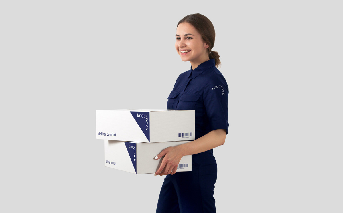 Стук в дверь стал метафорой, которая легла в основу позиционирования. Knock Knock — бренд, который доставляет комфорт в дома своих покупателей. «Стучится», когда вам нужен уют.