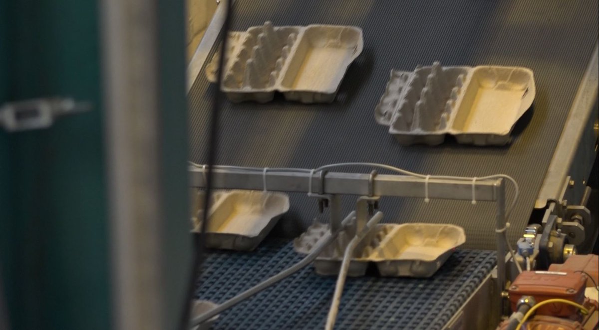 Не всем легко представить, что эти самые коробочки для яиц, к которым мы так привыкли, делают финны. В Подмосковье задействуют, к тому же, отечественные трудовые резервы.