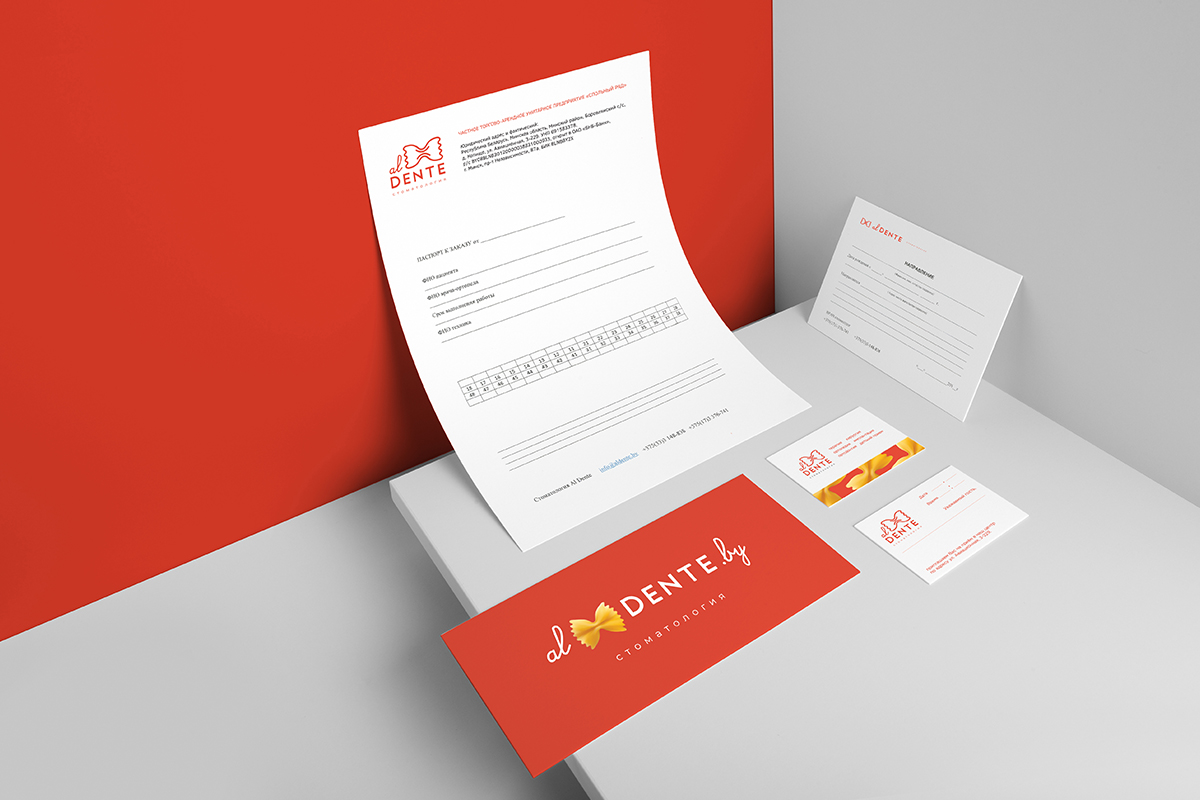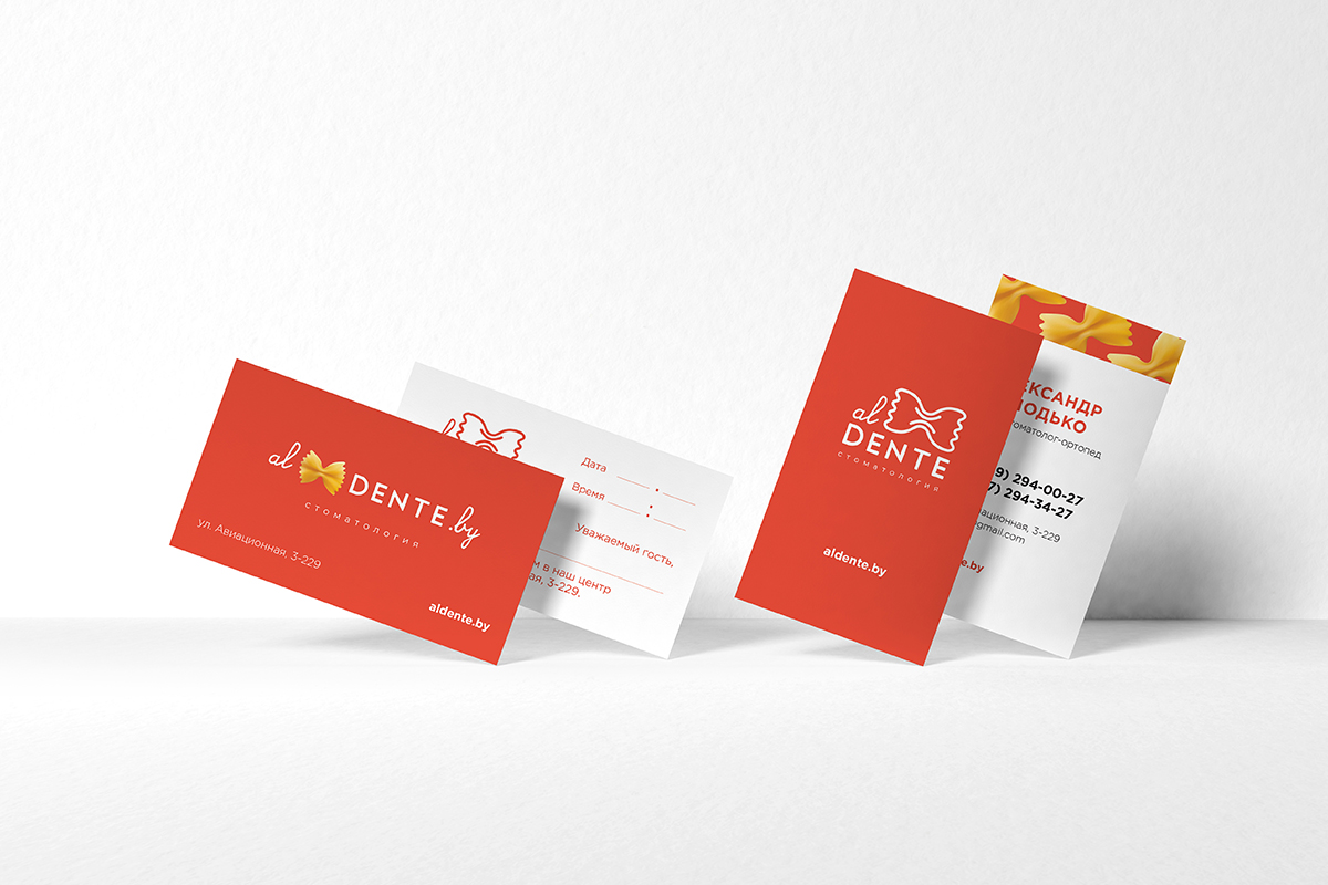 Для клиники был создан яркий нейм Al Dente — в переводе с итальянского «на зубок». Это обыгрывание понятия, работающее на позитивное восприятие ЦА. Название стало фундаментом для интересной концепции, поддерживаемой в айдентике.