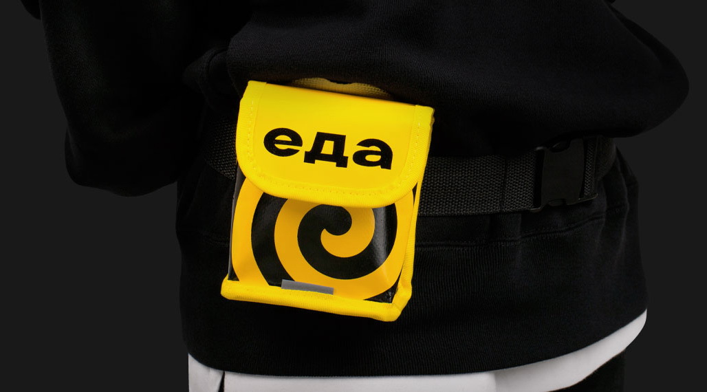 Ещё один предмет коллекции — миниатюрная поясная сумка с надписью «Еда», повторяющая по форме самый узнаваемый предмет одежды курьера — рюкзак. Туда поместятся наушники, помада и ключи. Как и большая жёлтая сумка курьера, она — водонепроницаемая и выдержит снег и град.