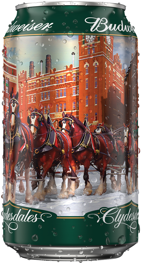 Культовые лошади клейдесдальской породы использовались компанией Budweiser для перевозки повозок с пивом с 1933 года и стали узнаваемым символом промо-кампаний бренда. В 1933 году лошади-тяжеловозы осуществили первую легальную доставку пива после окончания «сухого закона». И именно этих лошадей пивоваренная компания решила изобразить на лимитированной серии банок, выпущенных к рождественским праздникам.