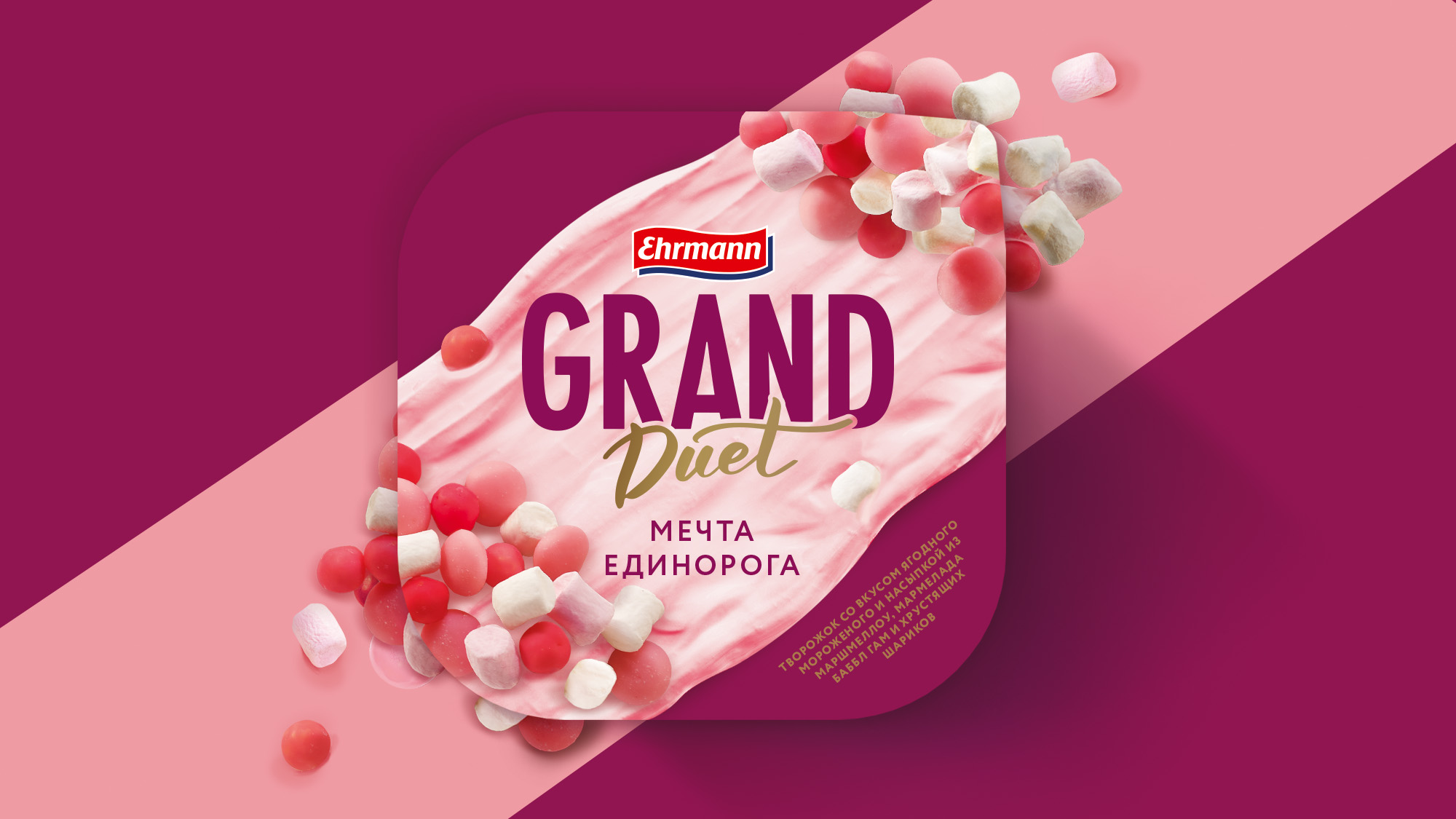 В 2019 году линейка Grand Dessert продолжает расширяться и на рынок выходит новый саббренд — Grand Duet — творожок с оригинальными и яркими топингами, сделанными по мотивам популярных современных десертов и знакомых вкусов из других категорий.