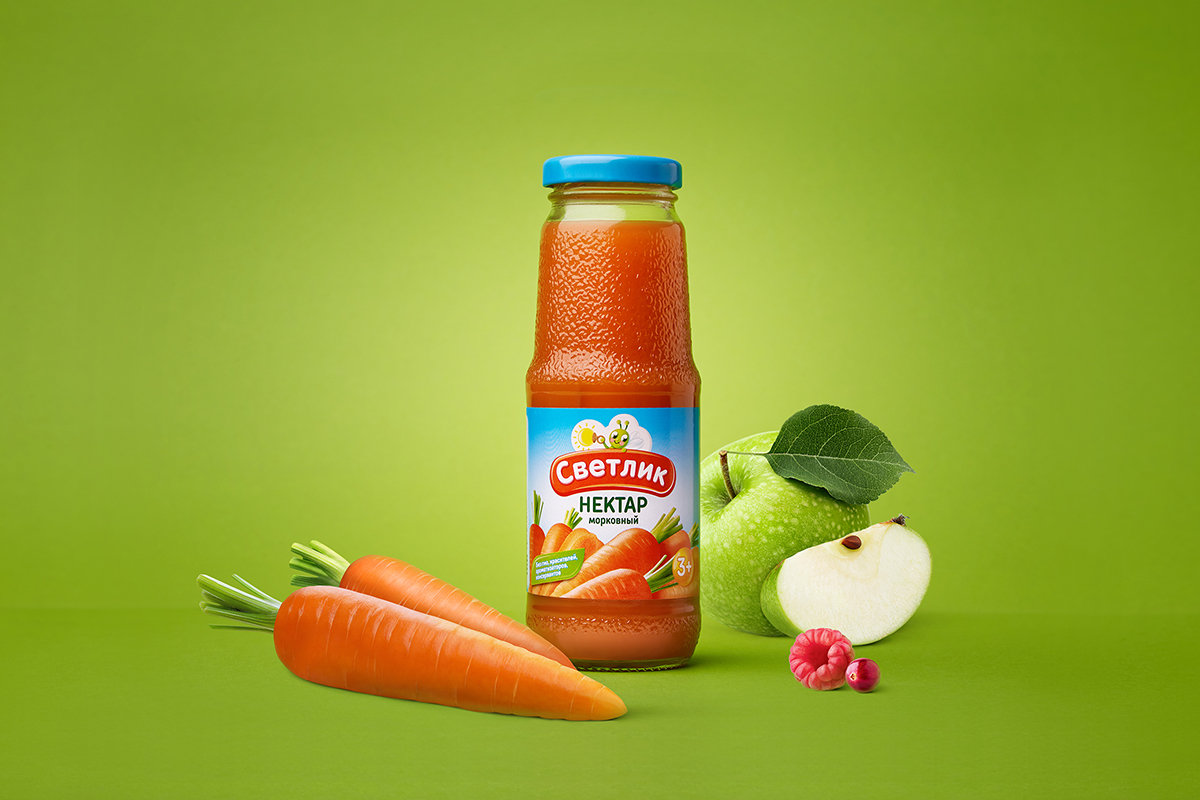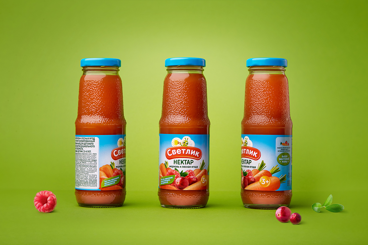 Клиент обратился в Fabula Branding с задачей провести редизайн логотипа и этикетки торговой марки «Светлик», продукт которой — овощные нектары на основе моркови. Необходимо было осовременить решение, сделав его привлекательнее для ЦА — детей и их родителей. И при этом сохранить преемственность прежнему решению: ТМ присутствует на рынках Беларуси и России более 10 лет и уже заслужила доверие потребителей.
