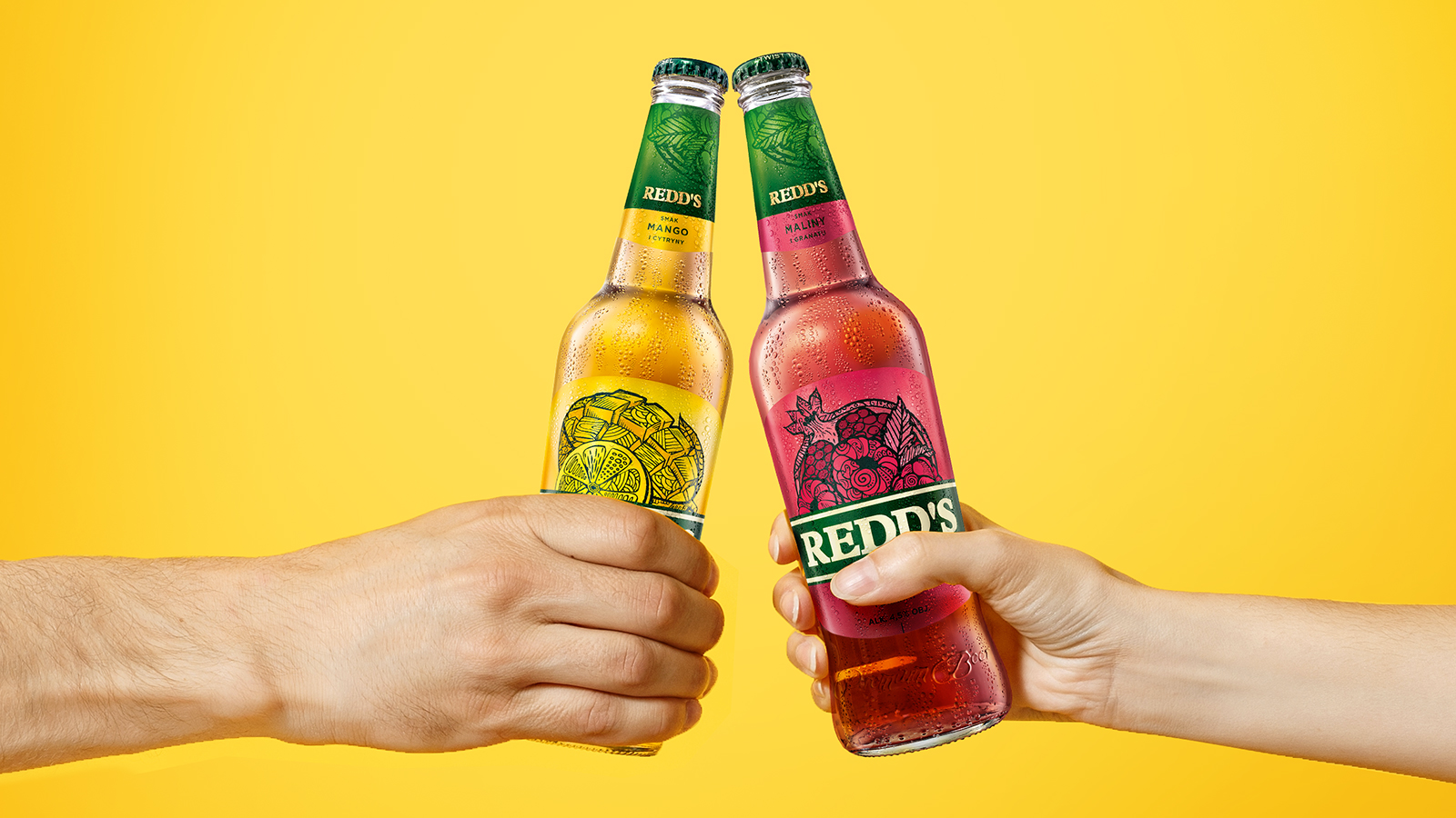 Новый дизайн Redd’s олицетворяет минимализм — прозрачное сообщение и цветовое кодирование с уникальными иллюстрациями крафтового пива. Горизонтальная зелёная лента с названием бренда позволяет продукту выделиться на прилавке, и заставляет выигрышно смотреться другие цвета в оформлении упаковки.