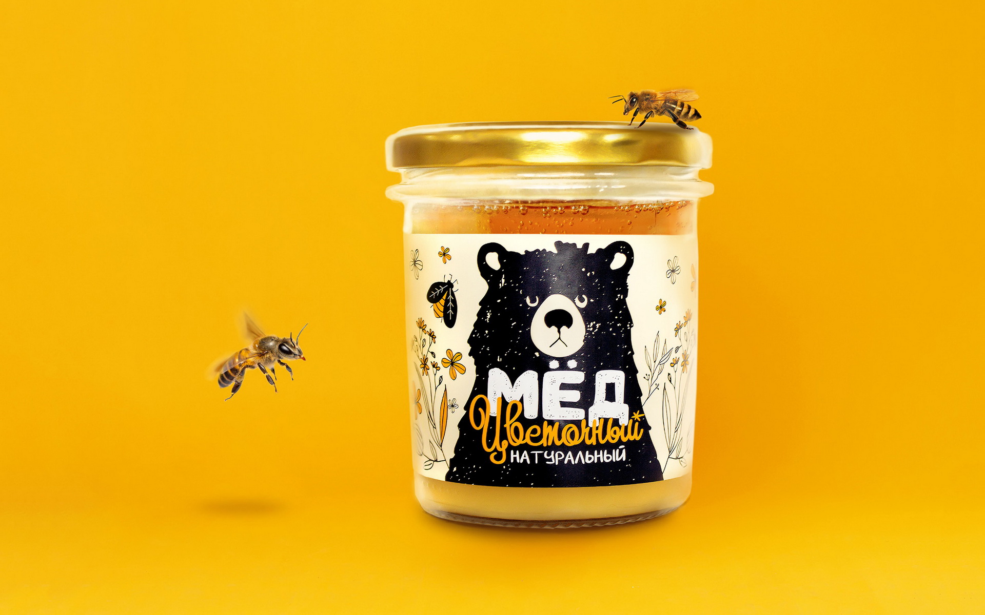 Мед — продукт серьезный. Полезный, питательный, богатый незаменимыми веществами. Так и бренд-персонаж медведь. По его серьезному внешнему виду сразу понятно: он — настоящий эксперт, профессионал в выборе качественного и вкусного меда. Если уж он появился на этикетке продукта — значит можно брать и не сомневаться.