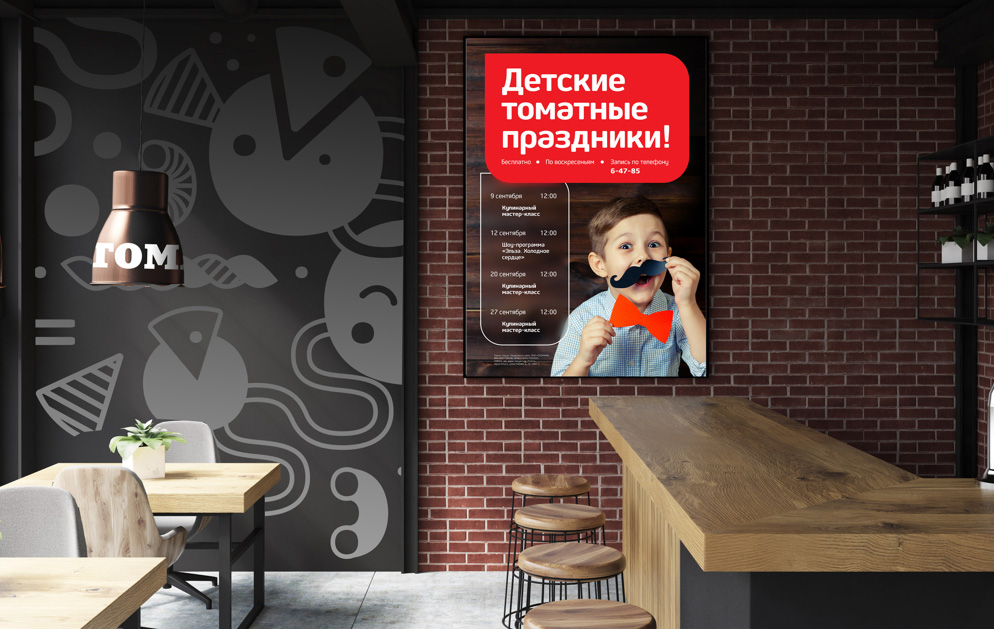 Одной из таких компаний-новаторов, которая готова и открыта к изменениям — сеть семейных ресторанов «Томато» с акцентом на пиццу. Сейчас уже в Тульской, Калужской, Воронежской и Липецкой областях открыто 37 ресторанов. Управляющая команда четко следует рационализаторскому курсу на современность, технологичность и укрепление позиций бренда. Поэтому спустя несколько лет «Томато» решились на большие перемены. Брендинговое агентство GN10 под руководством креативного директора Никиты Горбунова решило помочь сети ресторанов в их амбициозной миссии.