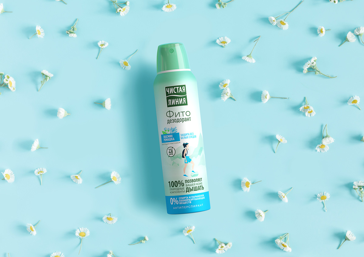 Чистая линия — единственный российский косметический бренд с впечатляющей историей, который основан на строгих принципах Фитотерапии. Перед командой дизайнеров стояла задача осовременить упаковку женской линейки фито-дезодорантов с сохранением цветокодирования бренда и использованием изображений молодых и энергичных девушек.