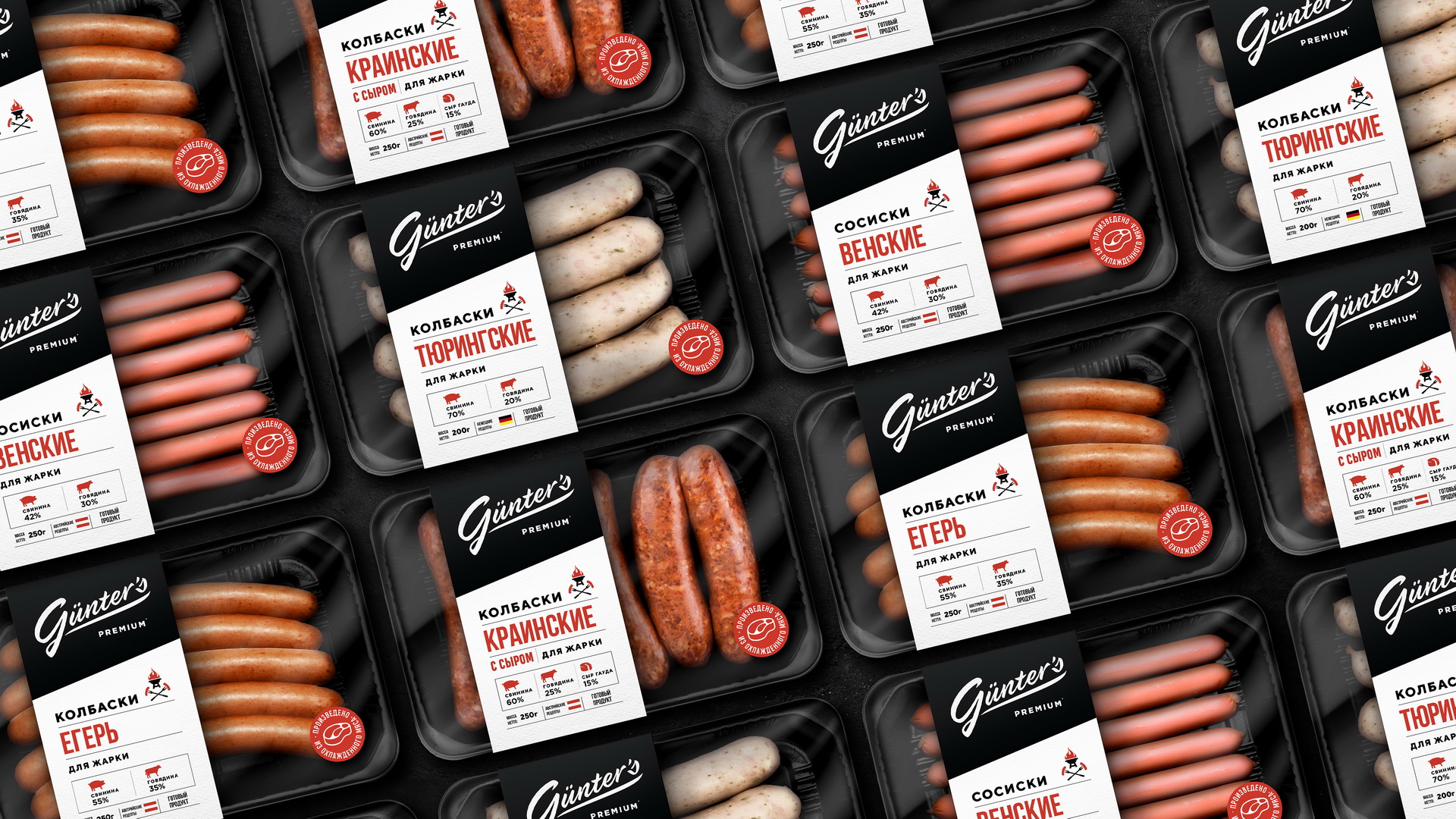 Компания «Гюнтерс мясные продукты» уже более 5 лет занимается производством колбас горячего копчения, сосисок для гриля и других сытных деликатесов, приготовленных по традиционным немецким и австрийским рецептам. Дизайн-студия KIMA by Coruna Branding помогла подчеркнуть конкурентные преимущества торговой марки, транслировать их благодаря дизайну упаковки и завоевать любовь потребителей.