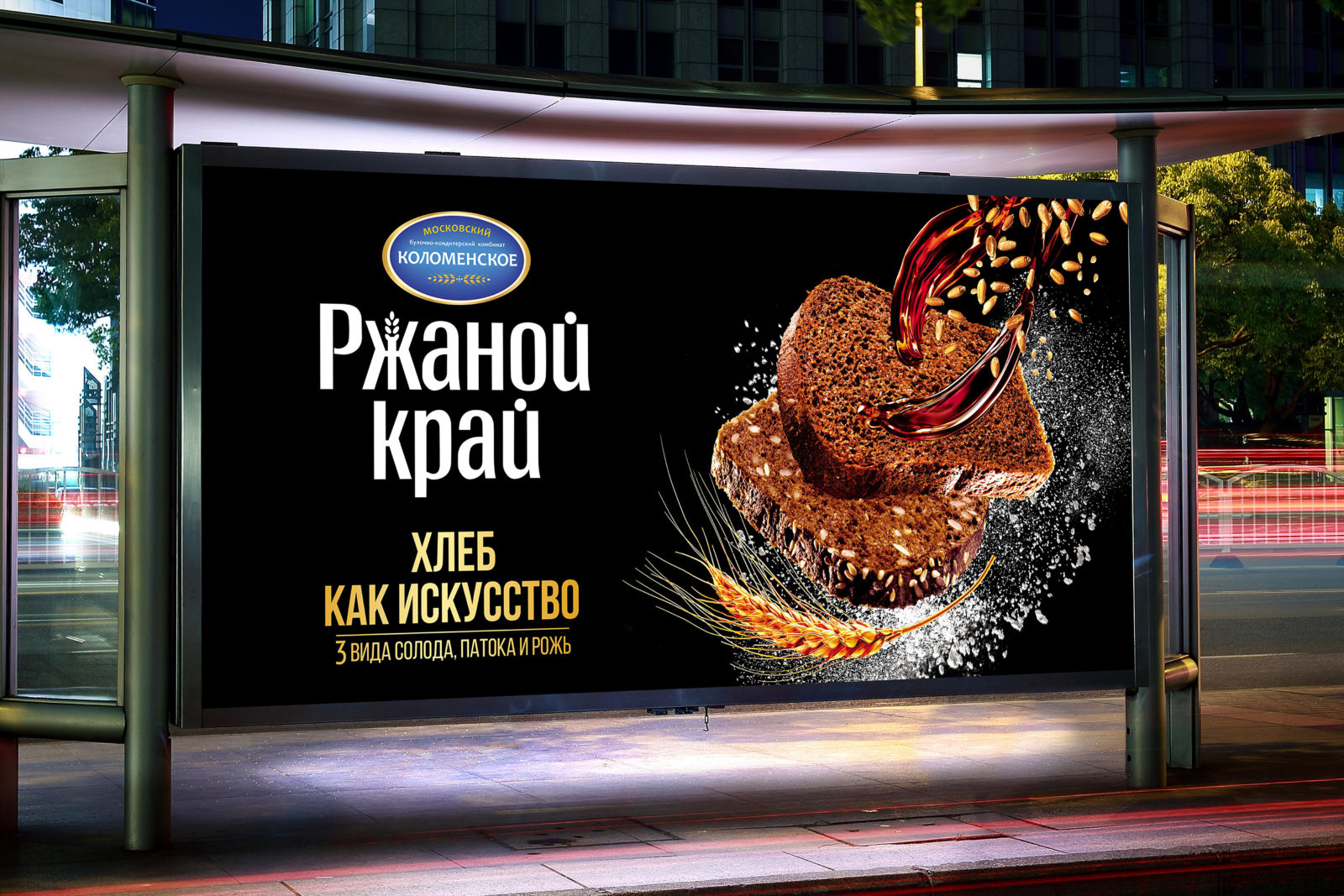 Чтобы дополнительно поддержать бренд в его обновлении, агентством также был разработан key visual и POS-материалы для размещения в местах продаж. Здесь основой для креативной идеи стал поистине оригинальный, не имеющий аналогов рецепт «Ржаного Края», — уникальное сочетание трех видов солода, патоки и ржи, благодаря которому хлеб имеет неповторимый сладковато-пряный вкус.