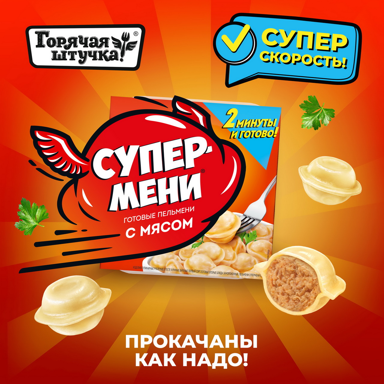 Бренд «Горячая штучка» известен «прокачанными» продуктами, сочетающими в себе необычный форм-фактор и яркий вкус. В ассортименте бренда представлены замороженные полностью готовые продукты, такие как «Чебупели», «Круггетсы», «Чебупицца» и пр., а также замороженные полуфабрикаты — пельмени «Бульмени» с бульоном внутри. Собственная исследовательская база и накопленный опыт позволяют компании выпускать не только нестандартные продукты, но и создавать совершенно новые для рынка категории. «Супермени» — еще один яркий представитель бренда «Горячая штучка», у которого есть все шансы развить новый продуктовый сегмент.