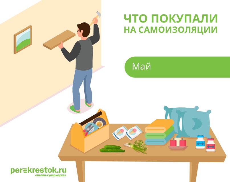 В середине мая клиенты Perekrestok.ru к закупленному в апреле спортинвентарю стали докупать спортивное питание — его продажи выросли в 2,5 раза. При этом ажиотажного спроса, на отдельные категории продуктов питания, в том числе с длительным сроком хранения, как это было в марте, не наблюдалось, а потребительская корзина пополнилась огурцами, мороженым и свежей зеленью. На протяжении всей самоизоляции в продуктовую корзину клиентов Perekrestok.ru входили картофель, яблоки, яйца, творог, йогурты, печенье и корнеплоды, например, морковь, редиска и свекла.