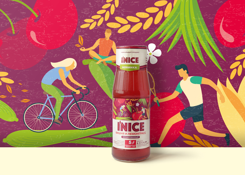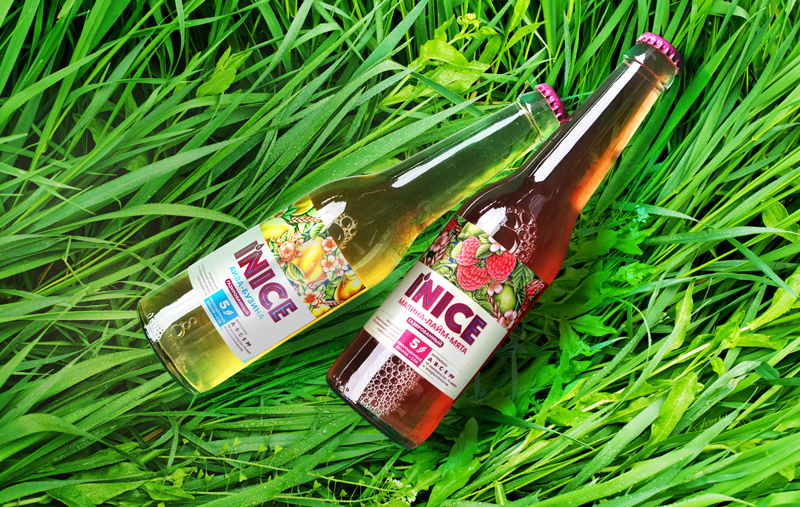 Стремление к новизне, дополненное заботой о здоровье легло в основу стратегии позиционирования напитков I'NICE. Название бренда напоминает потребителю о любви и заботе к себе без патетики гедонизма. Эстетика дизайна этикетки достигается благодаря смелым цветовым сочетаниям. Оттенки фиолетового, контрастирующие с оранжевым и синим, легли в основу палитры имени бренда. Эти цвета ассоциируется с духовностью и сочетанием несочетаемого. Полезный лимонад! Вы где-нибудь такое видели? Для молодёжи это уже айкэтчер. Ингредиенты мультизлакого лимонада органично объединились на фудзоне. Узор из злаковых, листов трав и ягод отражает философию нового бренда, в которой натуральность неотделима от яркого вкуса. Клеймы «5 пророщенные злаков» и информация о витаминах расположена под логотипом I'NICE. Увидев их, покупатель неизменно кладёт товар в корзину. Это подтверждают и тесты продаж.