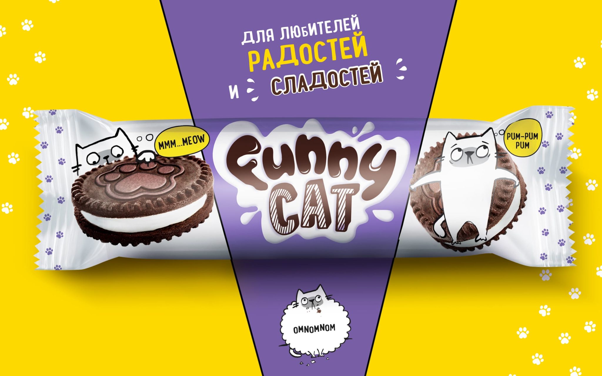 Компания «Посольство вкусной еды» обратилась в агентство Getbrand, чтобы разработать новый бренд сэндвич-печенья Funny cat.