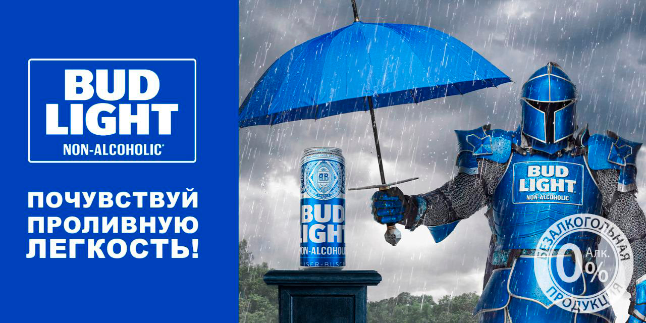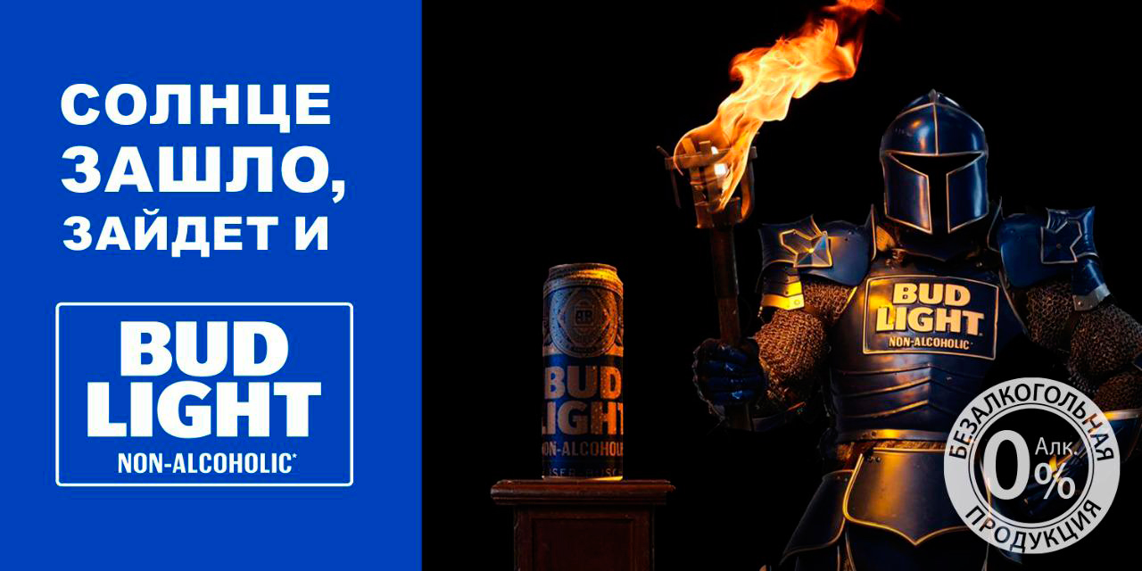 BUD Light Non Alcoholic, новый бренд на российском рынке, запустил креативную наружную рекламу в Москве, центральным героем которой стал рыцарь BUD Light Non Alcoholic, хорошо знакомый потребителям в США. В рамках кампании по всей Москве будут установлены интерактивные билборды с рыцарем BUD Light, который будет следить за погодой и подбадривать москвичей.