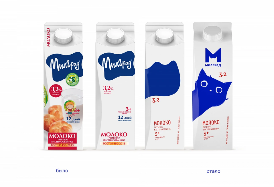 Специалисты агентства подготовили три варианта дизайна упаковки: обновленный, но преемственный к предыдущему дизайну, технологичный, показывающий ритм большого города и третий — очень милый, устанавливающий эмоциональную связь с целевой аудиторией. С точки зрения позиционирования было принято решение уйти в сторону доброты, «няшности» и милоты. «Милград» — первая марка молочной продукции, которая приносит счастье, поэтому для доработки был принят вариант с крупной иллюстрацией, вызывающей эмоциональный отклик.