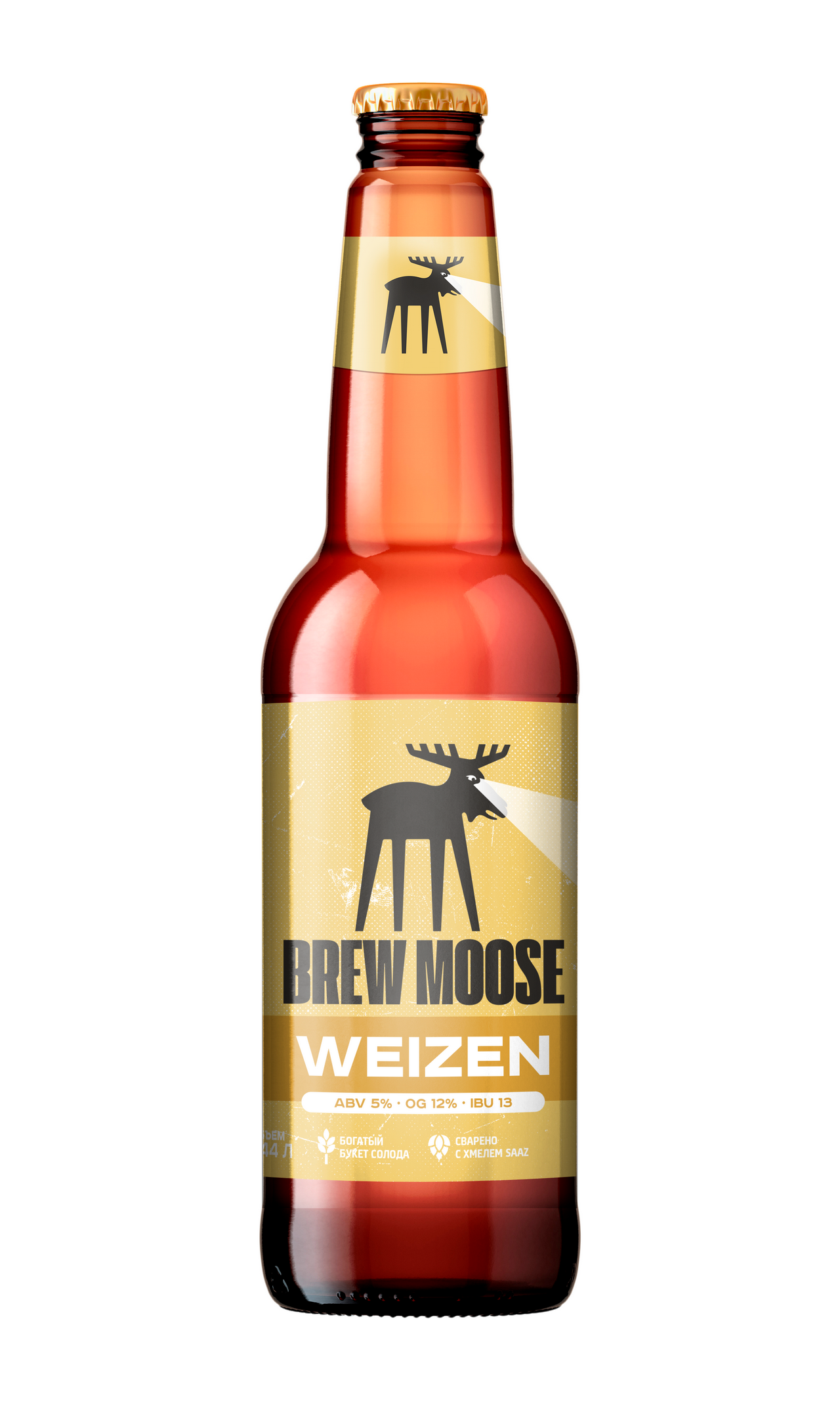 Brew Moose Weizen — пшеничное пиво, сваренное в немецком стиле с добавлением пшеничного и карамельного солодов. Оно сочетает в себе свежесть, легкость и яркий вкус, украшенный приятной кислинкой. В аромате раскрываются нотки гвоздики и банана. Brew Moose Weizen выпускается в стеклянных бутылках объемом 0,44 л.