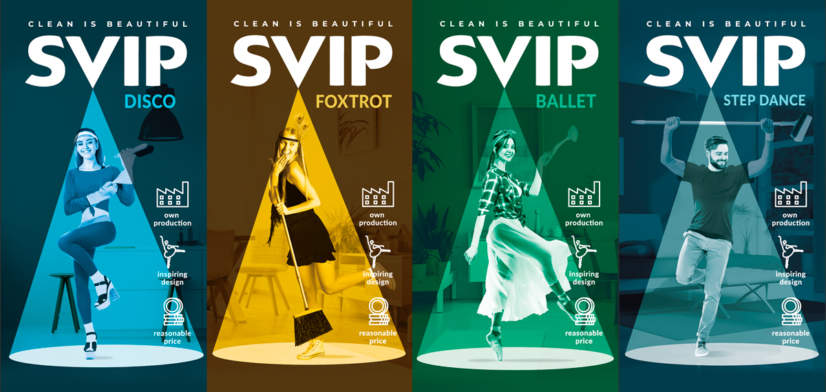 Брендинговое агентство Ohmybrand кардинально обновило марку аксессуаров для уборки SVIP в рамках её вывода на европейский рынок. Обновлённые этикетки щёток, швабр, тряпок и вёдер призывают нас воспринимать уборку как время... для танцев!