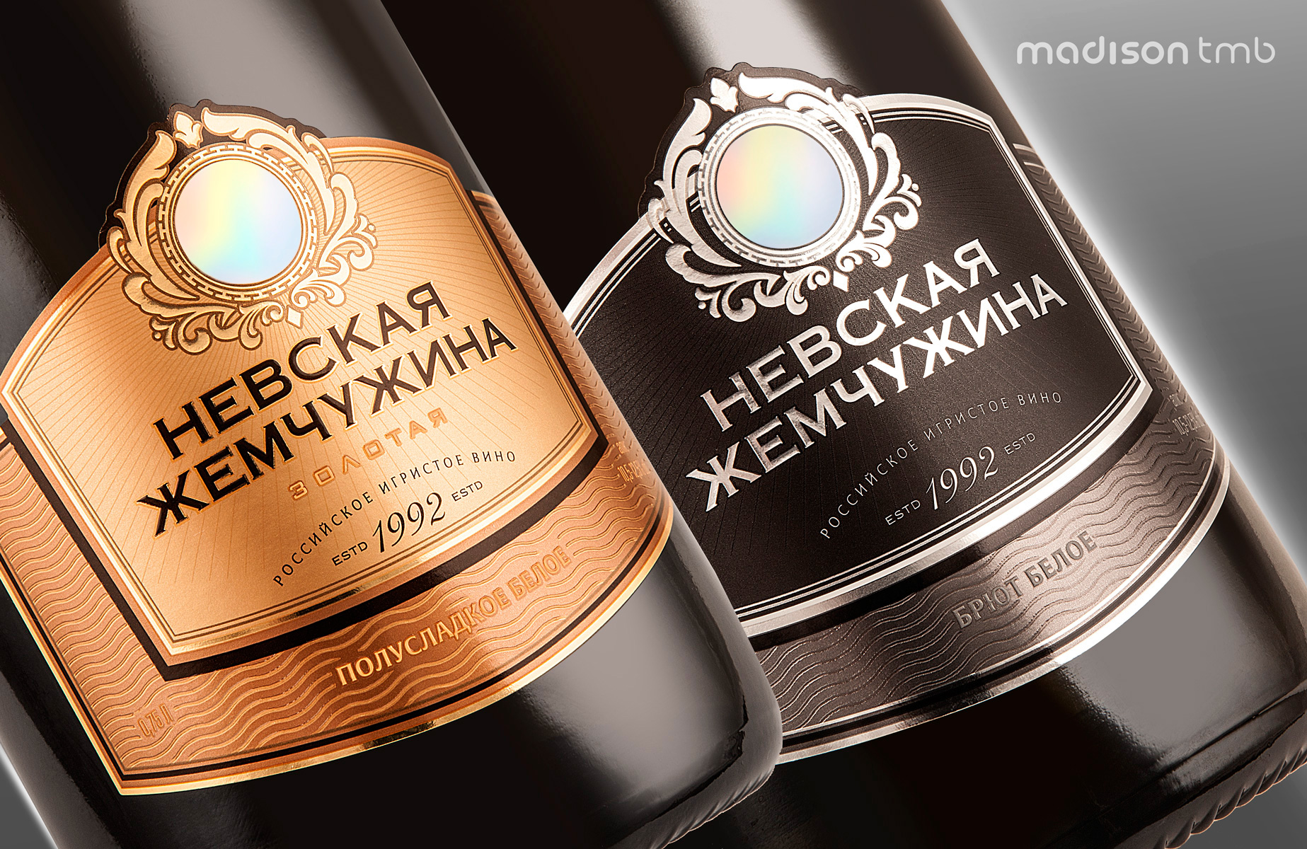 Чтобы прийти к конечному результату ребрендинга, агентство провело обширную подготовительную работу, а затем — несколько этапов доработки финального варианта дизайна. Были учтены разные экспертные мнения исследована потенциальная привлекательность продукта при использовании различных вариантов оформления. В итоге был создан новый образ бренда «Невская Жемчужина», который полностью соответствует концепции и несет посыл покупателю о качестве и ценности игристого вина с богатым историческим прошлым. Ретро-компоненты оформления упаковки в современном прочтении, в сочетании с подчеркнутой простотой графических линий, вызывают подсознательное доверие покупателей к продукту и побуждают выбрать именно его.