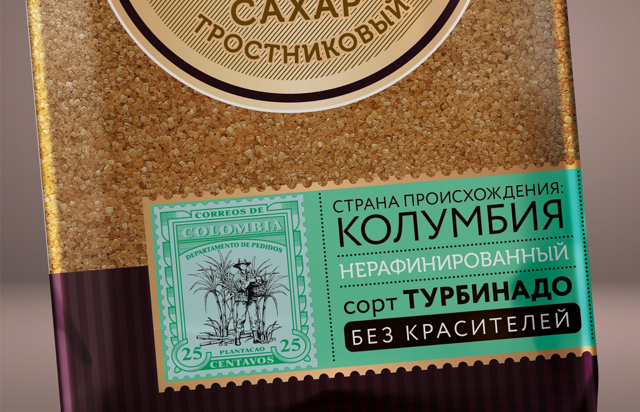 В дизайне специалистам агентства Getbrand было важно выделить особенности продукта, подчеркнуть его происхождение и натуральность. Тростниковый сахар относится к колониальным продуктам, в истории которых присутствует легенда и романтика.