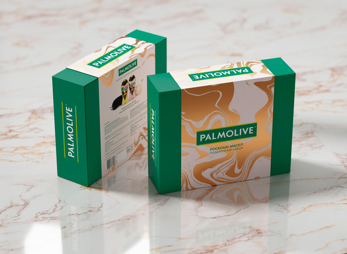 Упаковка двух новых наборов Palmolive подчеркнула преимущества продукта и выделила его среди других товаров в онлайн-каталогах.