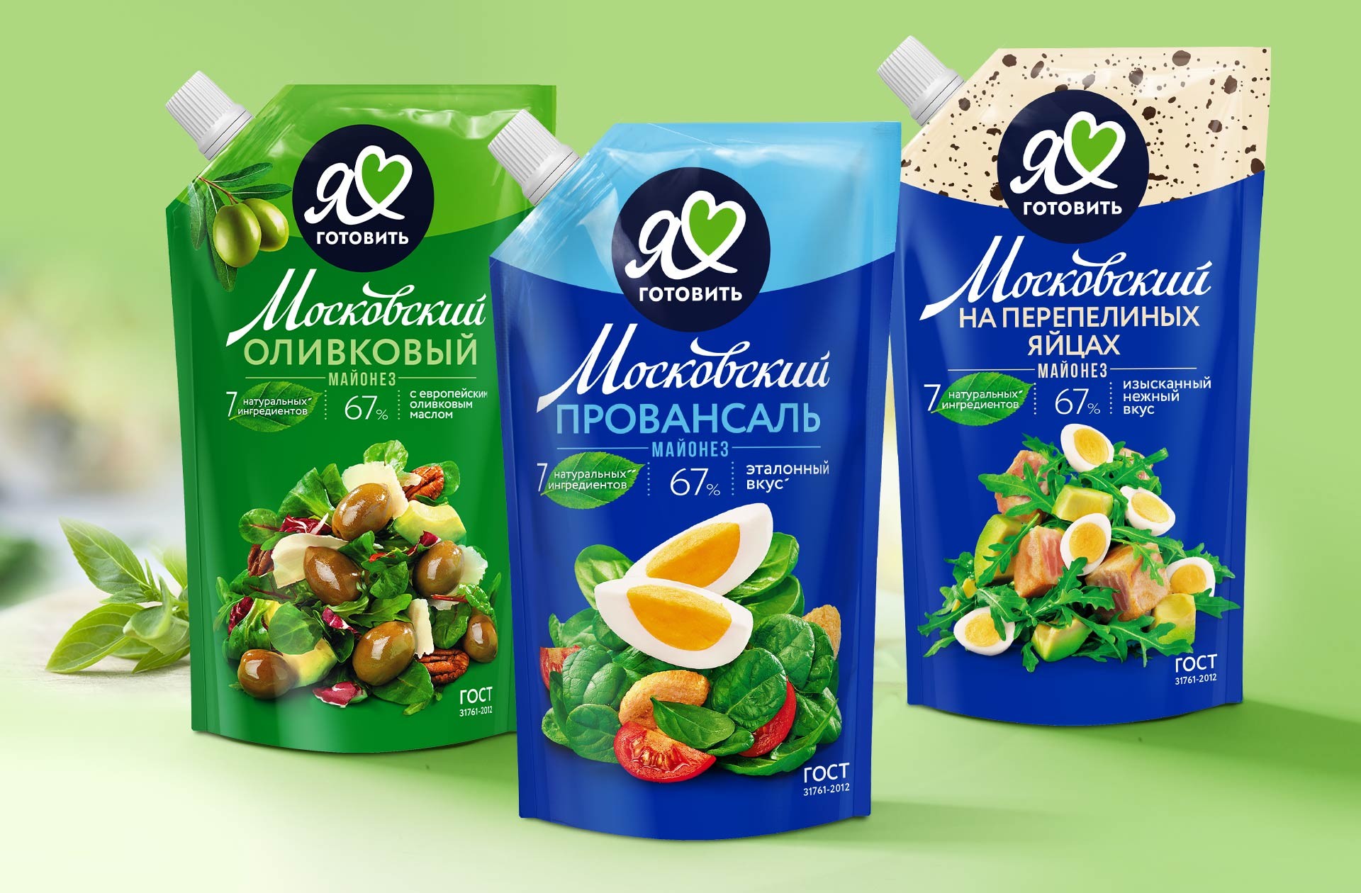 В 2014 году был сделан первый шаг по редизайну: на упаковке «Московского Провансаля» в верхнем правом углу появился зонтик «Я люблю готовить». Также радикально был изменен дизайн всей майонезной линейки. Под брендом «Я люблю готовить» также были запущены бутербродные соусы и салатные заправки. Пришло время делать второй шаг. И вот задачи, которые ставились перед агентством в рамках тендера: ЛОГОБЛОК — создать четкую архитектуру, транслирующую основную идею: Я люблю готовить — зонтик, Московский провансаль — саббренд. ЦВЕТОВАЯ ПАЛИТРА — сохранить основной цвет бренда — синий, сделав его теплее. Сделать легкую навигацию по вкусам, уйти от «непищевых» цветов при дифференциации вкусов, сохранив яркость. Транслировать чистый состав продукта. ФУД-ЗОНА. Уйти от показа ингредиентов, представить вкусные актуальные блюда, которые легко и быстро приготовить самому.