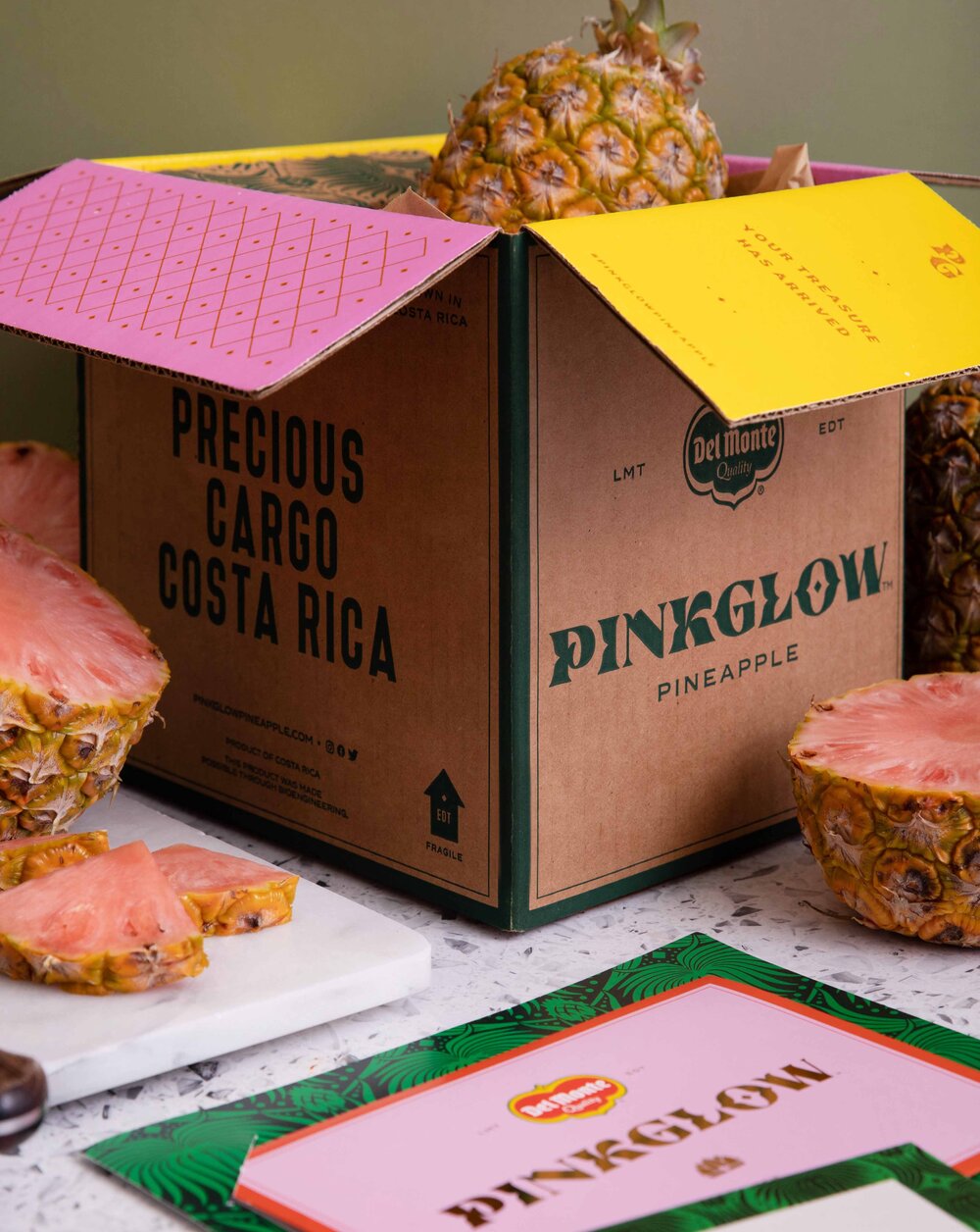 Pinkglow Pineapple — такое название получил совершенно новый фрукт, созданный компанией Fresh Del Monte. В отличие от других ананасов, Pinkglow растёт только в одном месте на Земле. Урожай уникальных ананасов собирают на экологичной ферме в Коста-Рике. Отличительной чертой новинки является розовая мякоть, которая «сияет как рубин».