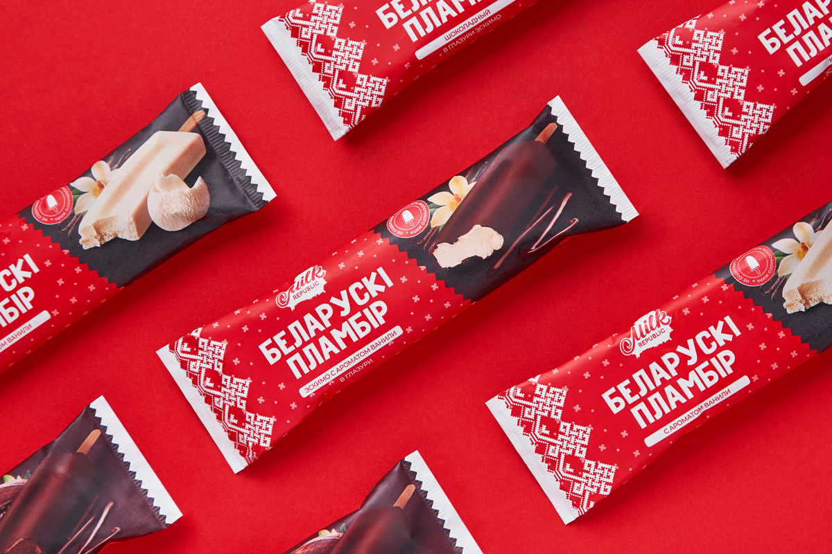 «Беларускі пламбір» — мороженое из натурального молока, заслужившее признание на рынке России. Упаковка продуктов ТМ нуждалась в переосмыслении — необходимо было обеспечить единство стиля, сохранив узнаваемость бренда.