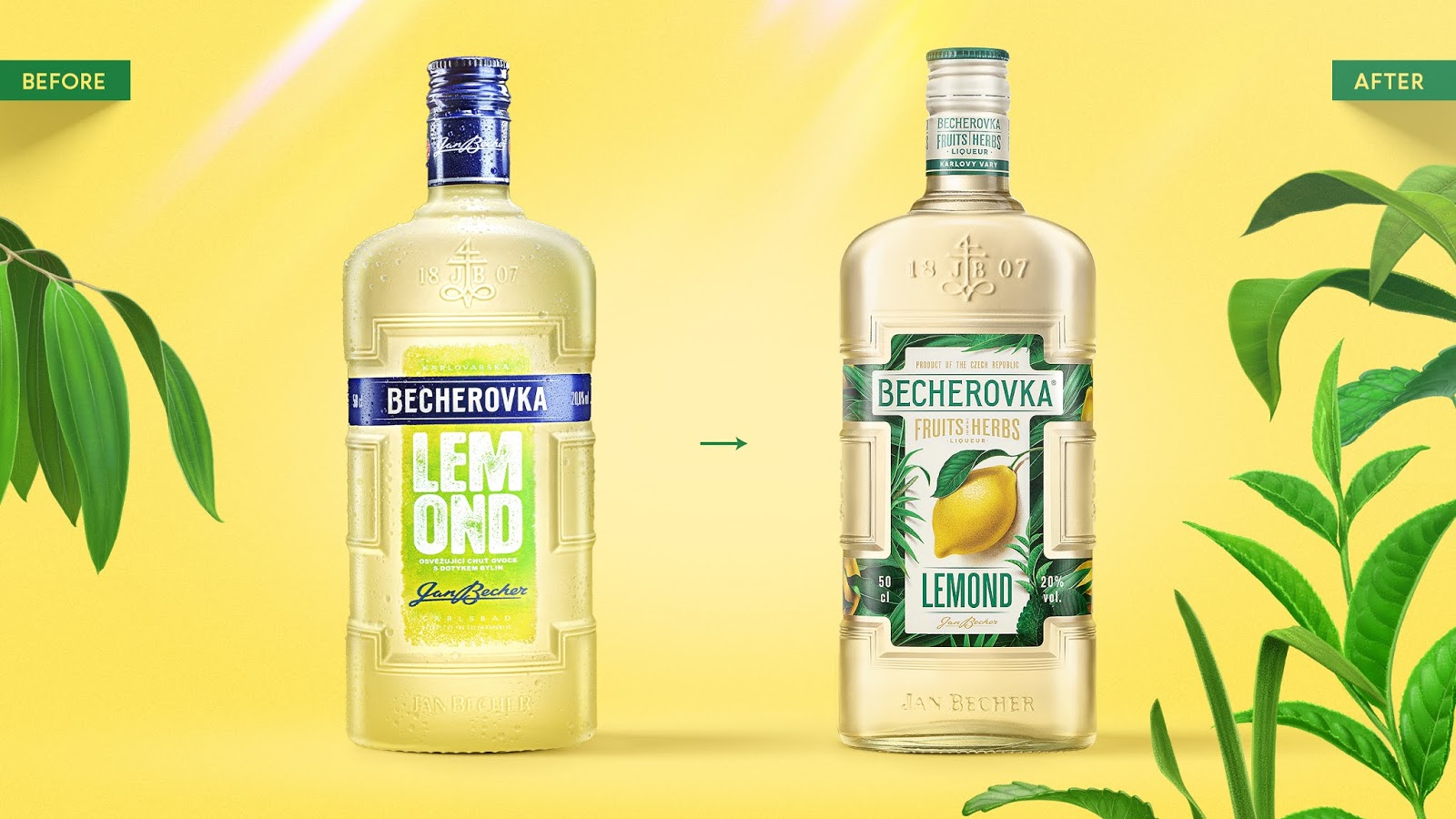 Becherovka LEMOND — хорошо известный напиток в ассортименте Becherovka. Это 100% натуральный продукт, в котором сочетается знаменитый травяной ликёр и настоящие фрукты и специи. Между тем, существующий дизайн не отражал этого, и, к тому же, устарел. Тогда решено было провести редизайн бутылки и визуальной айдентики бренда.