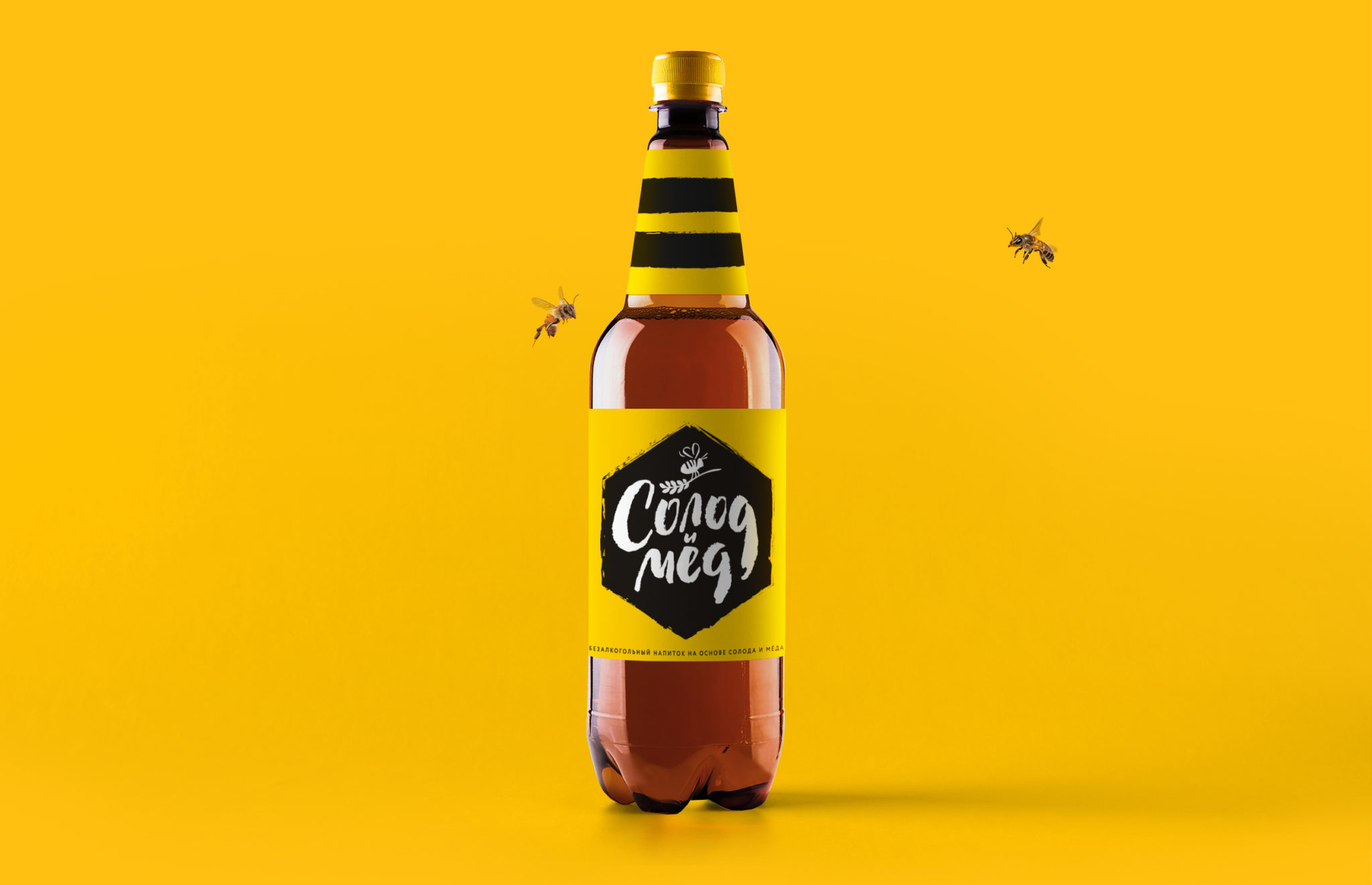 Компания Алкон обратилась к специалистам агентства за разработкой дизайна упаковки для нового солодового напитка на основе меда «Солод и мед». Важно было выделить напиток среди остальных на полке за счет айдентики и обозначить мед как главный ингредиент в составе.
