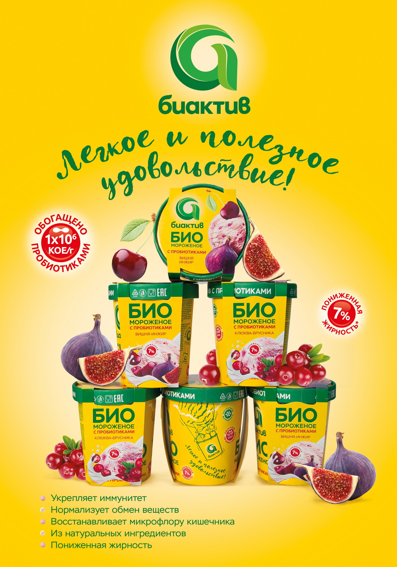 Еще один плюс мороженого «Биактив» — пониженный процент жирности (всего 7%). Это, конечно же, оценят люди, следящие за фигурой и выбирающие здоровый образ жизни. «Будь активным!» — один из слоганов марки и, пожалуй, эти слова как нельзя лучше подходят к описанию нового биомороженого.