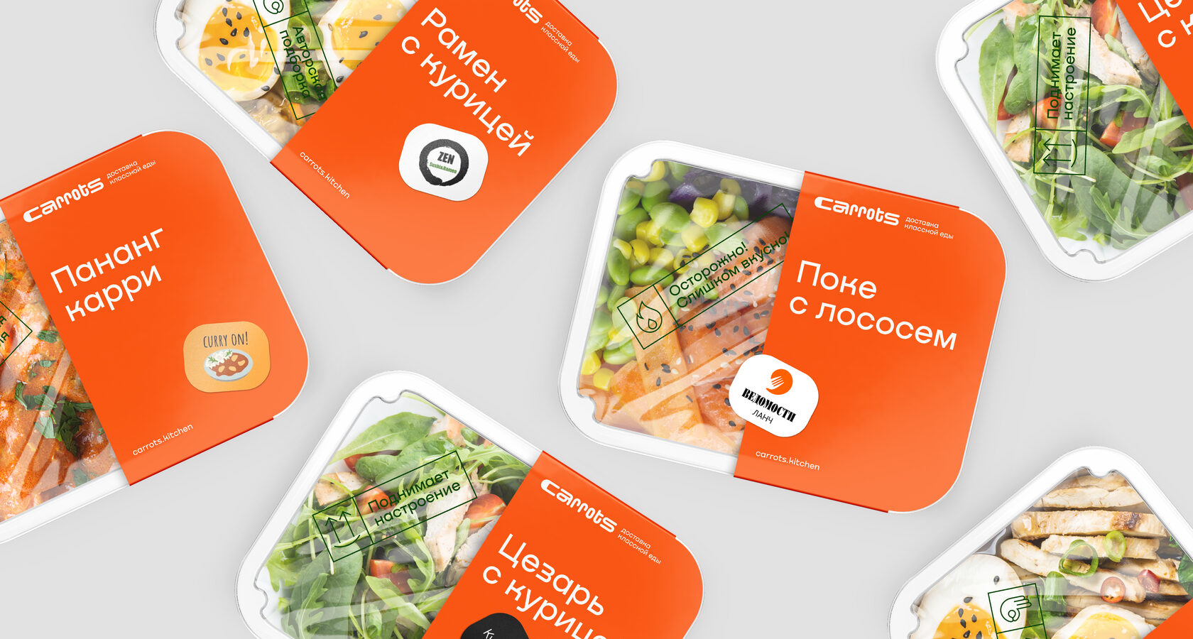 Чтобы дифференцироваться, дизайнеры сделали основным сигнальный оранжевый цвет, который поддерживают два оттенка зеленого. У всех желтый, розовый и зеленый, а здесь — яркая и бросающаяся в глаза морковка.